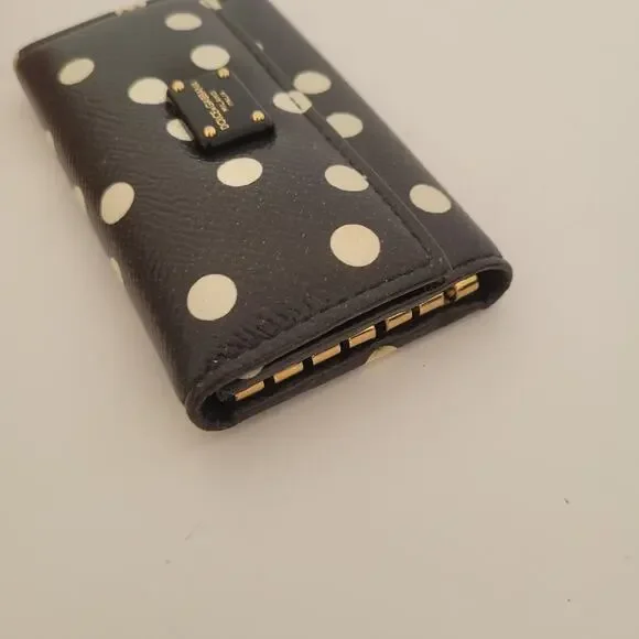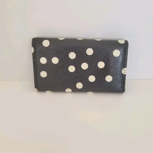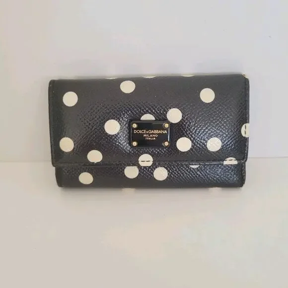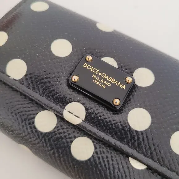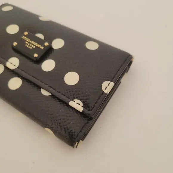 Dolce&Gabbana Leather Key Case Wallet Smalll Trifold Black White Polka Dot Box