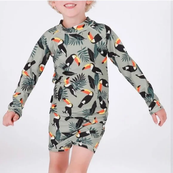🦚🦜🌿🌴dot Australia 🇦🇺 toucan 2-piece swimsuit🌴🌿🦜🦚Rash guard setTropical leaves and flock of perched toucans style this playful and comfortable swim set.• 2-piece set• 85% polyester, 15% elastane• Machine wash, tumble drySwim kids...Brands for exposureRylee + Cru, Tea, Summersalt, Lola + The Boys, Boden, Saks Off Fifth, Hanna Andersson, Zara, iloveplum, Billabong, O’Neil, Hobie, Roxy, Hurley, Beach Riot, Stella Cove, Nordstrom, H&M, Splendid, Boden Baby, GAP, 7 for all mankind, ZARA, Crewcuts, Tucker and Tate, Vans, Mini Boden, Ruffle Butts, Andy & Evan, Lucky Brand, Janie and Jack, Smallable, Pèpè, Mini Melissa, Childrenchic, Maisonette, H&M, Mini Rodini, Sovereign Code, Free Planet, Rags, Jamie Kay, Art Class, Hurley, Vans, Mini Boden, E.G.G. NY, A&F, Lucky Brand Jeans, Jamie Kay, Vans, Mini Boden, Rachel Zoe, Grayson Mini, Andy and Evan, Fin and Vince, Childhoods, The Tot, Brave Little Ones, Luna + Luca, Athleta Girl, Cotton On, STEM, Little Bipsy, Rags, Art Class, Car & Jack, Hurley, Vans, Mini Boden, Billabong, E.G.G. NY, Grayson Mini, A&F, Lucky Brand Jeans, Hanna Andersson, MOLO, Burberry, Volcom, Binky Bro, everything but the princess, beach riot, rufflebutts, ruggedbutts, deux par deux, APPAMAN,Watskin sunwear, Lola + the Boys, abysse USA, quince, TEA, REIMA, minnow, primary, swim zip, ROXY, beach lingo, o’Neil