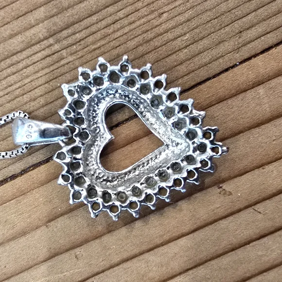 Elegant Sterling Silver Heart Pendant Necklace With 45 Diamonds