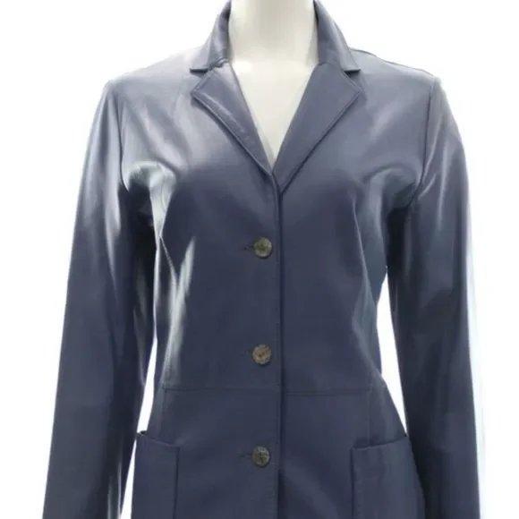 Enrico Mandelli Slate Blue Leather Jacket, Notched Lapel, Three Front Button Closure, Two Front PocketsEst.Retail: $1,090Size: SmallItem#: MPS-1231-103Measurements:Bust Approx. 34"Waist Approx. 30"Length Approx. 27"Sleeve Approx. 31"Condition: Good condition--General wear apparent. Material: LeatherDesigner: Enrico MandelliOrigin: ImportedAll Items Are Guaranteed Authentic