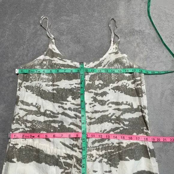 Item: Enza Costa JumpsuitSize: 3 = LargeMeasurements:Provided in the photos.Please review measurements to ensure desired fitCondition:Preowned, no flaws noted. 100 % French Linen.Fabric has a coated texture.I ship items out dailyItems are stored in a smoke free, pet friendly homePlease feel free to ask any questions you may haveAll items have been cleaned per platform standards & policiesSKU: 3670Keywords: Enza Costa Jumpsuit Womens Large 3 Grey French Linen Drawstring Resort Vacation