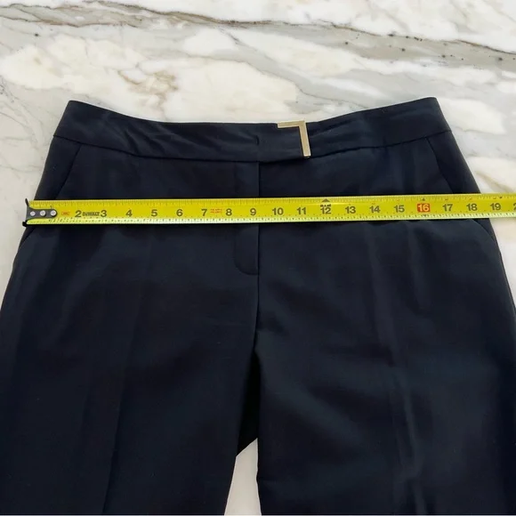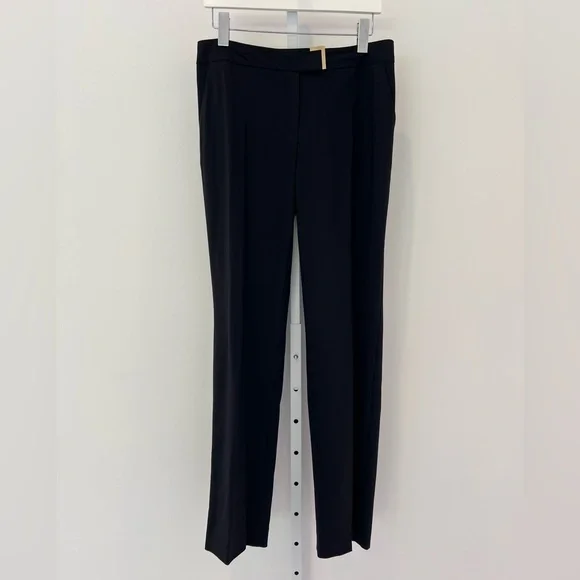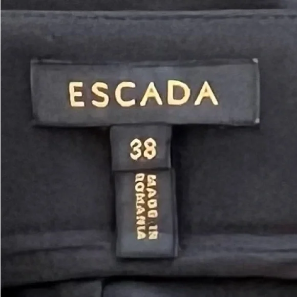ESCADA BLACK TROUSERS EMBELLISHED SNAP CLOSURE SIZE 38 / US 8Brand: EscadaFabric: Unknown, fabric tag removed, not sure if it’s a stretch viscose or a stretch summer wool, it’s lightweight fabricColor: BlackSize: 38 / US 8Condition: Very good, faint signs of wear, may arrive wrinkled, will need use of a lint roller.Each listing takes quite a bit of time to prepare. I try to do my best with photos and dimension photos.