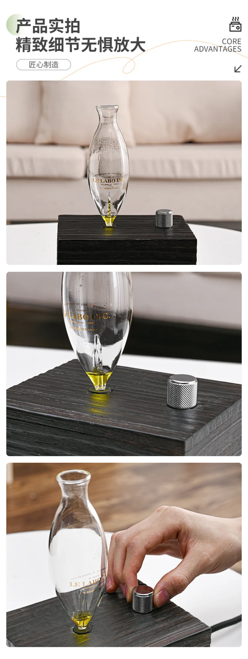 Features: Aromatherapy essential oil evaporating diffuser, no water, no heating.