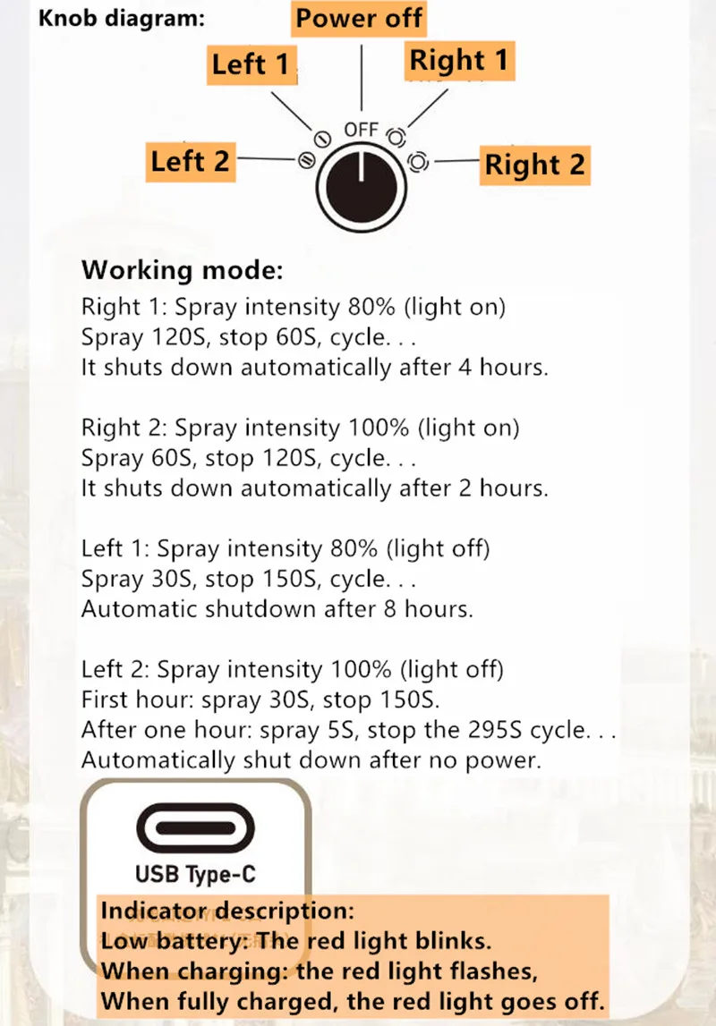 Spray 120S, stop 60S, cycle. . .