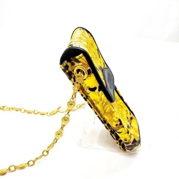 These mini phone case bags are all the rage now! What a comeback!This Versace one is absolutely gorgeous! Even if you didn’t like the bag, the chain alone is worth it! It’s removable and would actually make an amazing necklace! Dual duty!I was able to get my iPhone 15 Pro Max with a case into the bag, but it was a very tight squeeze and nothing else would fit. If you have a smaller phone than a Pro Max, it should probably fit. Otherwise, we always keep our phones in our hands anyway, so enjoy throwing your keys, a couple cosmetics, some gum and your card holder in here, and out the door you go! You could even put your sunglasses in it!Width (inch) : 3.14 inch(approx)Height (inch) : 6.69 inch(approx)Depth (inch) : 1.57 inch(approx)Shoulder/Handle (inch) : 46.46 inch