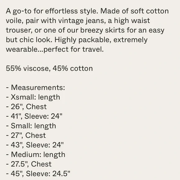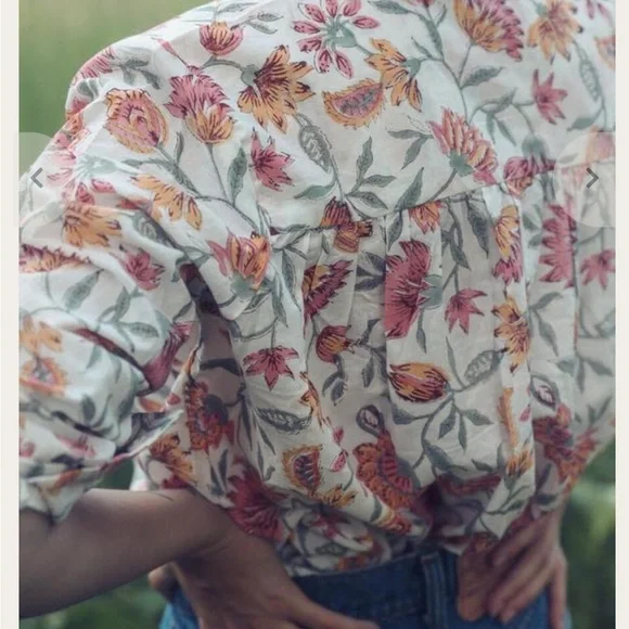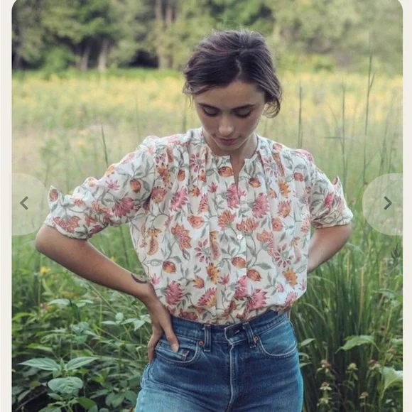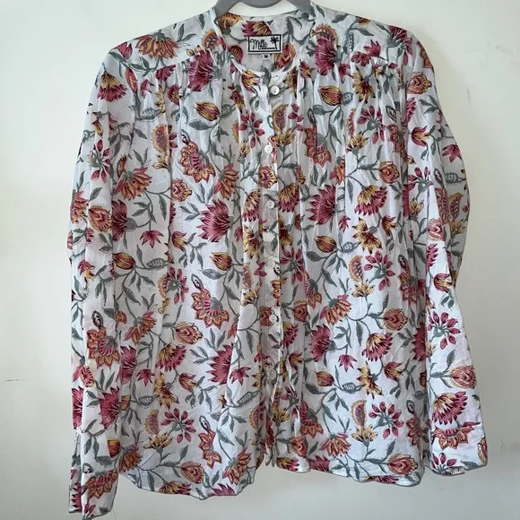 Excellent condition Mille Florian Blouse in Warm Carnation in Size Medium. Worn once. A go-to for effortless style. Made of soft cotton voile, pair with vintage jeans, a high waist trouser, or one of our breezy skirts for an easy but chic look. Highly packable, extremely wearable...perfect for travel.55% viscose, 45% cotton- Measurements: - Medium: length- 27.5", Chest- 45", Sleeve: 24.5" FABRIC / MATERIALsoft cotton voile 55% viscose 45% cotton