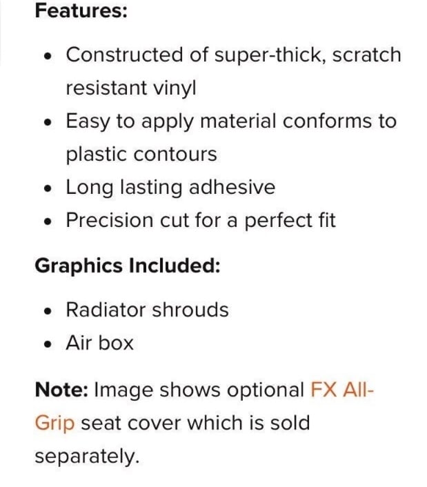 After years of testing and working hand in hand with companies like 3M, Factory Effex has been able to create graphics that are durable, easy to install, and offer the very best in value and performance. The FX EVO 12 Shroud and Airbox Kit includes graphics for both radiator shrouds and air box sides to give your bike a factory look without breaking the bank.