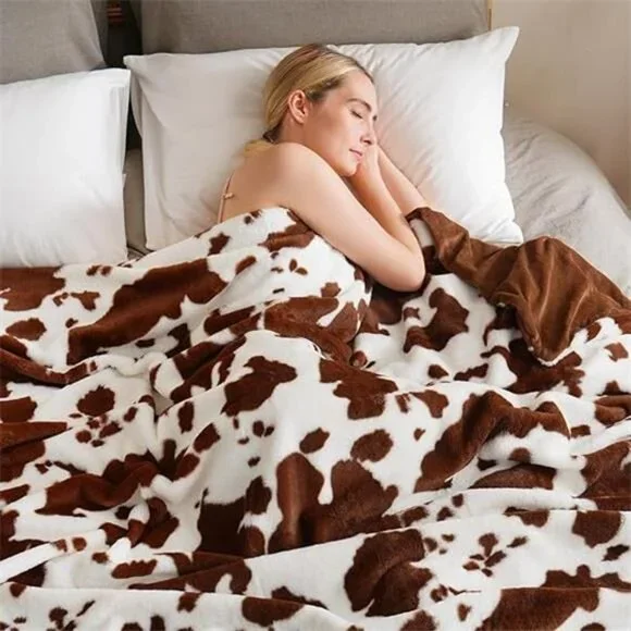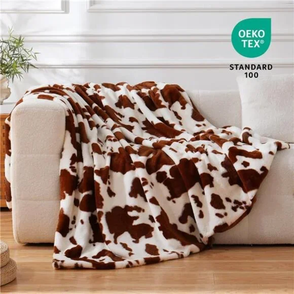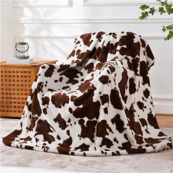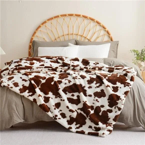 🧿Size and Packaging: Our cow print blanket measures 160x200 cm. Please allow for a 1-2 cm deviation due to hand cutting and stitching. The item is vacuum packed, so it may appear slightly less fluffy and wrinkled. However, washing the blanket once will restore its fluffiness and softness.🧿Material:?Our throw blanket is stitched from two sides. One side features high-quality faux fur (printed), which is very soft and fluffy. The other side is made of crystal velvet, smooth and delicate (non-printed).🧿Design:?The cow print on the faux rabbit fur side of the blanket creates a very realistic appearance, perfect for decoration and photography. The other side is made of ultra-soft and delicate crystal velvet, suitable for direct skin contact.🧿Wide Application:?Our fluffy cow blankets are perfect for living rooms, bedrooms, cars, and offices. They fit well on sofas, beds, benches, chairs, and window seats, making them especially popular in western room decor.🧿Easy Care and Machine Washable: Wash separately in cold water on a low setting. Do not bleach, iron, or dry clean. Tumble dry for easy maintenance.