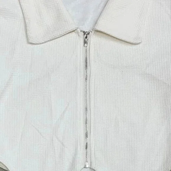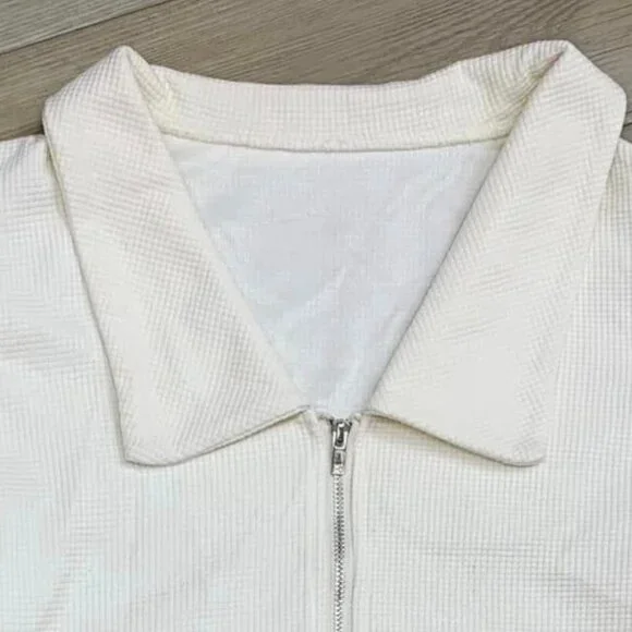The Feminine Cream Ribbed Cropped Top with Zipper offers a stylish and versatile look that effortlessly combines comfort and fashion. Made from soft ribbed fabric, it fits close to the body, creating a flattering and chic cropped silhouette. The neutral cream color makes it easy to pair with a variety of outfits, from jeans to skirts. The back zipper adds a sleek and modern touch, making it both practical and fashionable. Whether you're dressing up for a night out or keeping it casual, this top adds a touch of sophistication to any look.