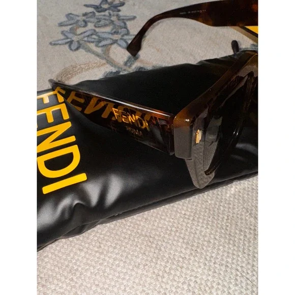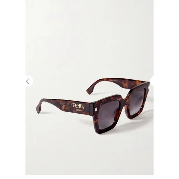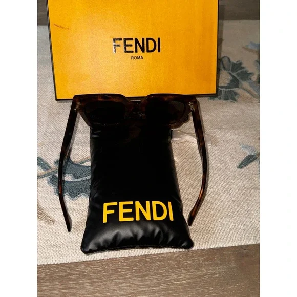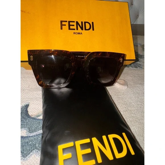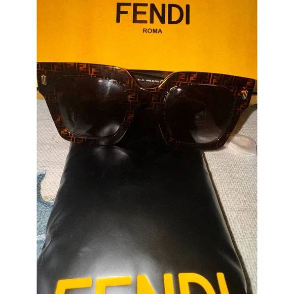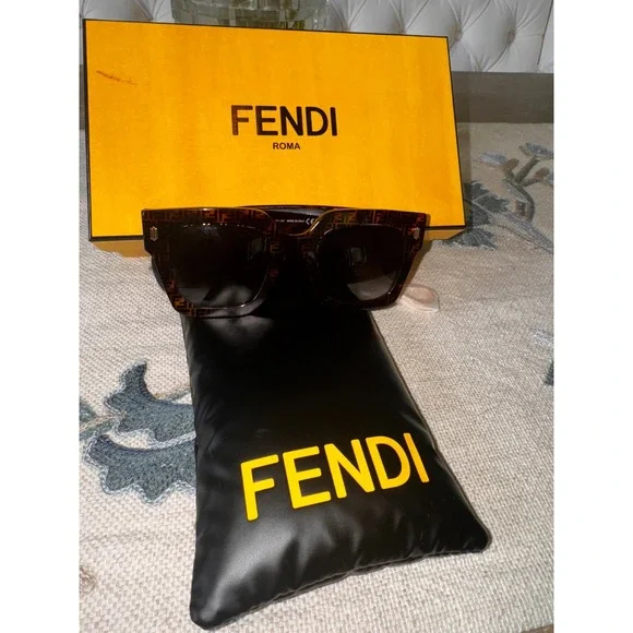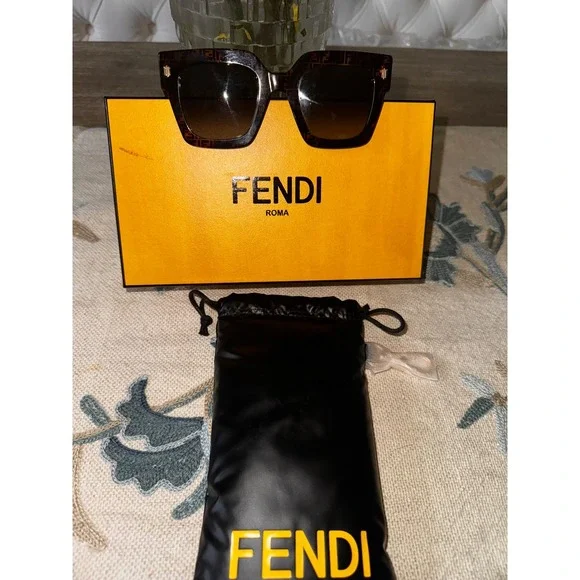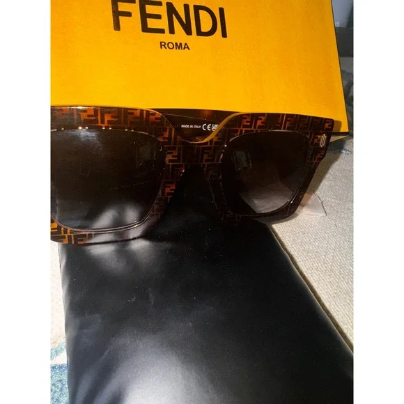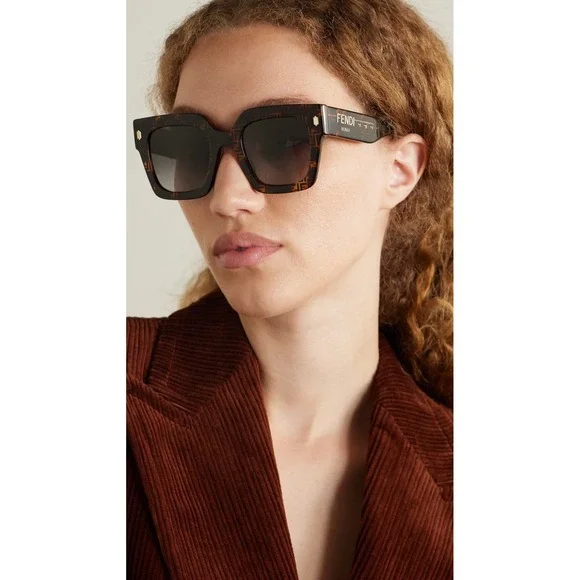 Command attention with these Fendi sunglasses, a statement piece that exudes luxury and sophistication. The iconic FF logo is artfully displayed across the frames, instantly recognizable and adding a touch of high-fashion flair. The square frames offer a modern, bold silhouette that complements a variety of face shapes, while the gradient lenses provide both style and essential UV protection. Gold-tone accents at the temples add a subtle gleam, elevating the overall design. Made in Italy, these sunglasses are a testament to impeccable craftsmanship and timeless style. Perfect for adding a touch of glamour to a sunny brunch, a chic city stroll, or a stylish vacation getaway.Department: WomenFrame Color: BrownType: SunglassesStyle: SquareLens Color: GrayLens Technology: GradientFrame Material: AcetateUV Protection: UV400Keywords: Fendi, Sunglasses, Designer Sunglasses, FF Logo, Square Frame, Luxury Sunglasses, Italian Made, Fashion Sunglasses, Women's Sunglasses, Shades, Eyewear, Gradient Lenses, Statement Sunglasses