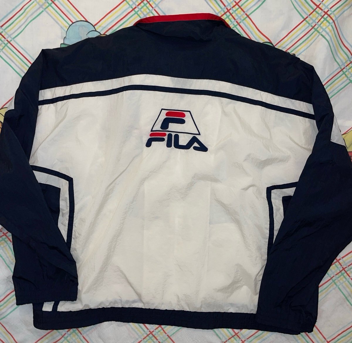 This is a vintage 90s Fila brand windbreaker jacket in good condition with no holes. Size is a XXL PLEASE SEE PICTURES FOR MEASUREMENTS AND DETAILS. Comes from a smoke/ pet free home.