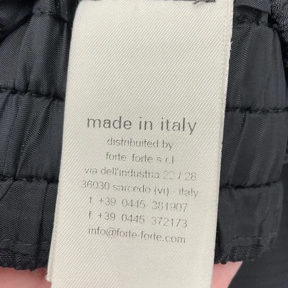 - Forte Forte Imported Italian Designer Cropped Wide Leg Textured Trouser Pants- Italian luxury brand Forte Forte is composed of two designer brothers, and they are known for their artistry and attention to detail. They have boutiques in Paris and Milan- These chic and sophisticated wide leg trousers feature a gathered drawstring waist and have the most amazing silky feel. I put several closeups of the unique oval honeycomb texture that almost gives these a sheen. I’ve never seen anything like it. They’re truly gorgeous!- Either NWOT or pristine preowned condition. I have found no flaws. You can see the white stitches for the tag on the outside of the pant but this is part of the design, not a flaw. If this bothers you you can always remove the tag and the stitching- 4 pockets, 2 back and 2 side front- Size III which equates to US 8, see size chart- 74% viscose and 26% cotton, internal details like pockets are 100% silky and eco friendly Cupro- Measurements (on hanger and approximate): ~16 inches waist not stretched, ~34.5 length, ~23 inches inseam- Please see all photos for condition.- Item is sold as is.- Smoke-free home.- Item shown is exact item you will receive.- Clothing sizes may vary based on designer and style.** Don’t like the price? Make me an offer! Thanks for looking! **Forte Forte, Italian, designer, luxury, high end, flawless, cropped, wide leg, drawstring, pockets, imported, textured, sleek, sophisticated, chic, elegant106-5247.5H1