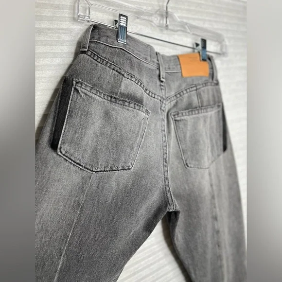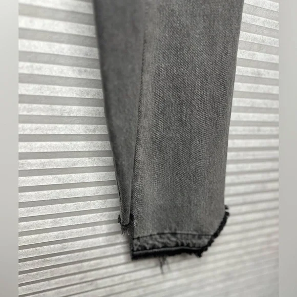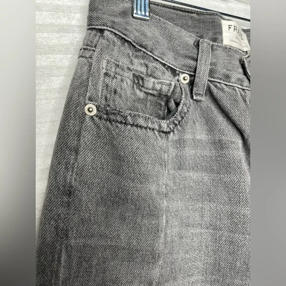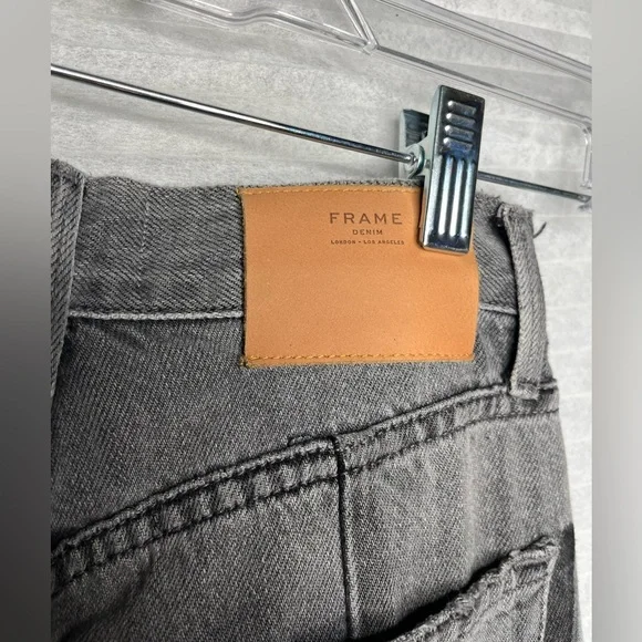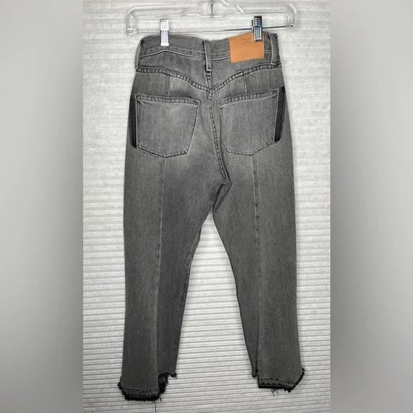 FRAME Nouveau Le Mix GrayCropped Jeans Ankle Designer TwoTone Fray Size 23Mid-RiseExcellent Pre Owned ConditionDistressedAlternating PanelingGray-Ash ContrastStraight legButton ClosureRaw cropped hemWhiskering/faded detail on pocketsTan Leather Logo Patch5 Pocket StylingApprox Mesurements Laying Flat• Waist 24”• Rise 10 1/2”• Inseam 24”• Length 34”