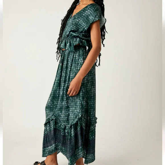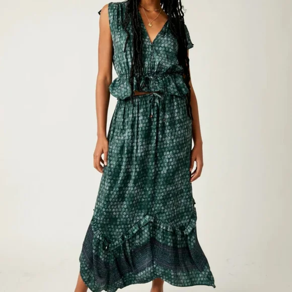 Free People Dreambound Set Emerald ComboJust as effortless as it is essential, this stunning set is featured in a drapey, relaxed fit and perfectly printed, slightly silky fabrication for the perfect done-in-one look no matter the occasion.Top:▪︎V-neckline▪︎Drawstring waist▪︎Defined bottom hemSkirt:▪︎Drawstring waist▪︎Tiered design▪︎Effortless pull-on style▪︎Polyester Shop With Confidence👌I'm a Posh Ambassador 👌I ship same/next day👌5⭐ Seller👌I welcome reasonable offers❤