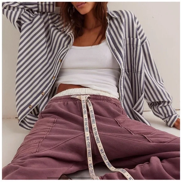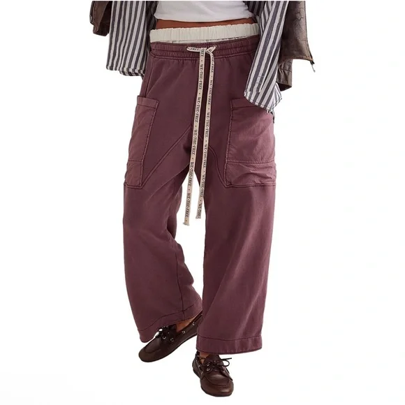 FREE PEOPLE JET SET KNIT PULL ON in Plum size small NWTElevate every look with these effortlessly essential pants featured in a slouchy, relaxed fit and soft fabrication with straight legs, logo-adorned drawstring waist, and defined pockets at sides for a utility-inspired touch.Fit: Relaxed, slouchy fitFeatures: Elasticated waistband, logo-adorned drawstring, striped side pockets, straight legs, defined seaming throughoutWhy We ❤ It: The perfect pair to style with anything from a comfy ‘fit to a more put-together top, these timeless pants are sure to be a staple in your weekly wardrobe rotation.