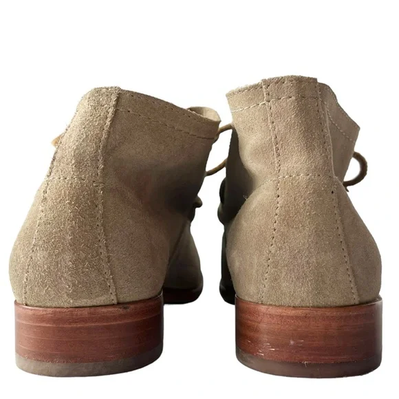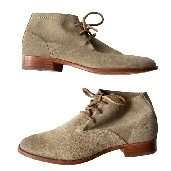 In true chukka style, with roots in British desert footwear from World War Il, the Frye Women's Carly Chukka features the classic style of suede uppers, open lacing, and only the necessary amount of eyelets. This pair was thankfully made for more peaceful pastimes, but you still benefit from their timeless style and durable leather soles whether you're strolling through the city for some shopping or stopping by the racetrack to place a bet or two on your favorite pony.Classic chukka boots with practical styleSuede uppers add a chic accent to your blouse and jeansLeather lining molds to your foot for personalized comfortDurable outsole provides long-lasting, resoleable durabilityLeather soleTan suede Lace up