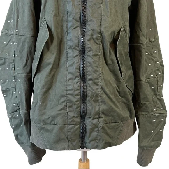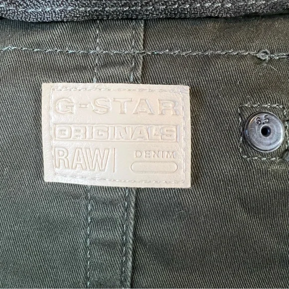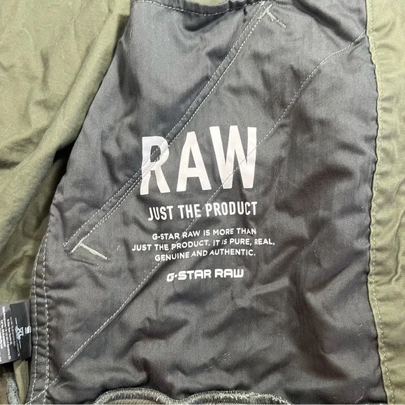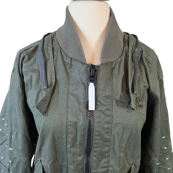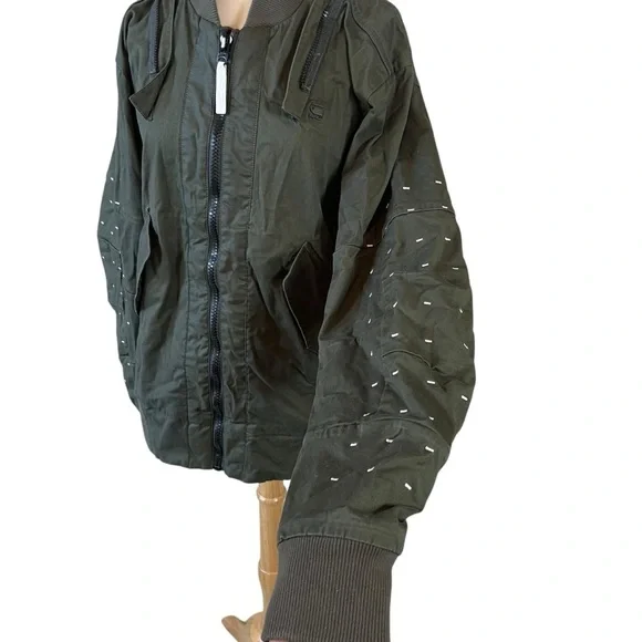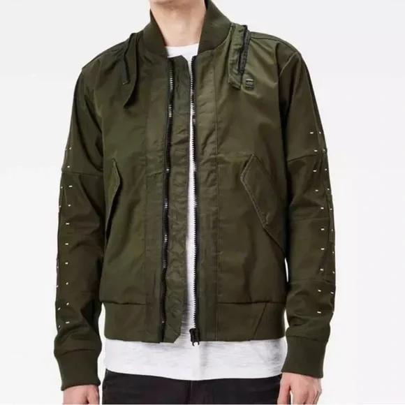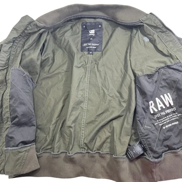 G-STAR RAW Large Twill Submarine Rackam Zip Slim Bomber Army JacketGreat pre owned condition front button pockets, allowing you to store items securely and keep them close at hand. Cratted from high-quality twill fabric, this jacket is designed to last.Features: Premium micro stretch twill, Zip closureDot stitch-work details, Unlined, Compact twillColor: Army GreenMaterial: 97% Cotton, 3% ElastaneSize: X-LargeSee photos for approximate measurements