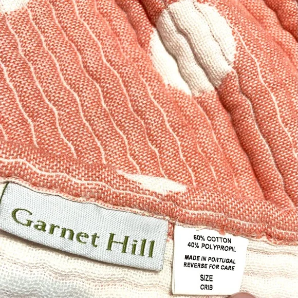 Garnet Hill Pink Peach with White Polka Dots Quilted Blanket Bedspread for Baby CribOn one side: Pink Peach with White Polka DotsOn other side:White with Pink Peach Polka DotsSo Soft and SnugglyQuilted and TexturedCotton BlendMachine Wash, Tumble DryPer their website: Garnett Hill's goal is to create designs that pay homage to the traditions of the craft, while creating quality designs that last and last.Has been washed. I found a few raised threads*, but, No Rips, Tears, Stains or Damage Noted. Clean and in Excellent Condition. Fast Shipping-Accept Reasonable Offers- Smoke free home- When you buy multiple items in a bundle, you get a bundle discount & only pay 1 shipping fee :)Questions? Leave a comment below!Thank you for Supporting my Woman, Minority, Veteran Owned business :)
