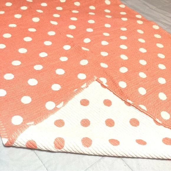GARNET HILL Pink Peach with White Polka Dots Quilted Blanket Bedspread for Baby