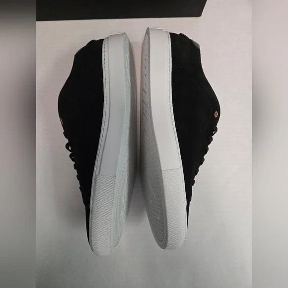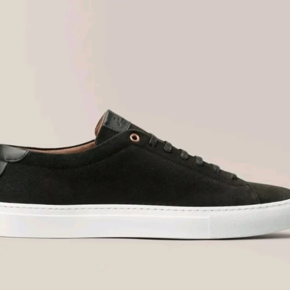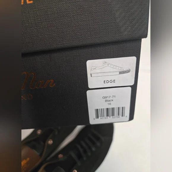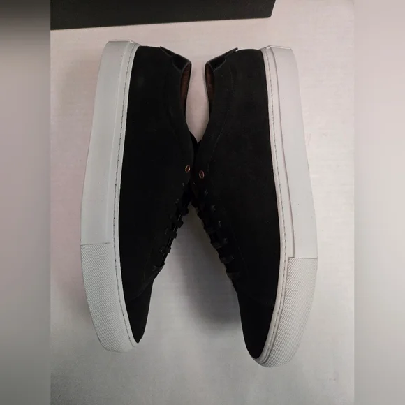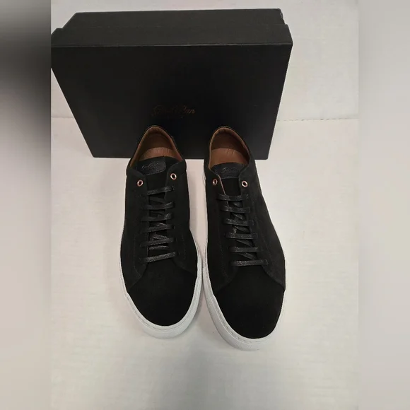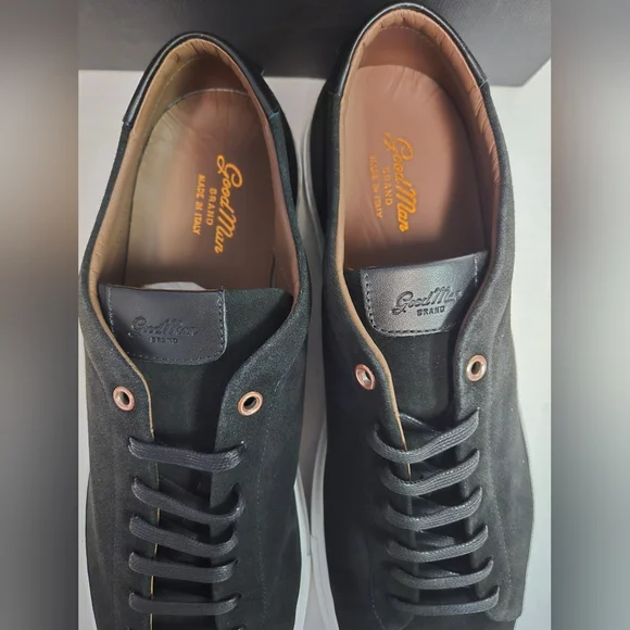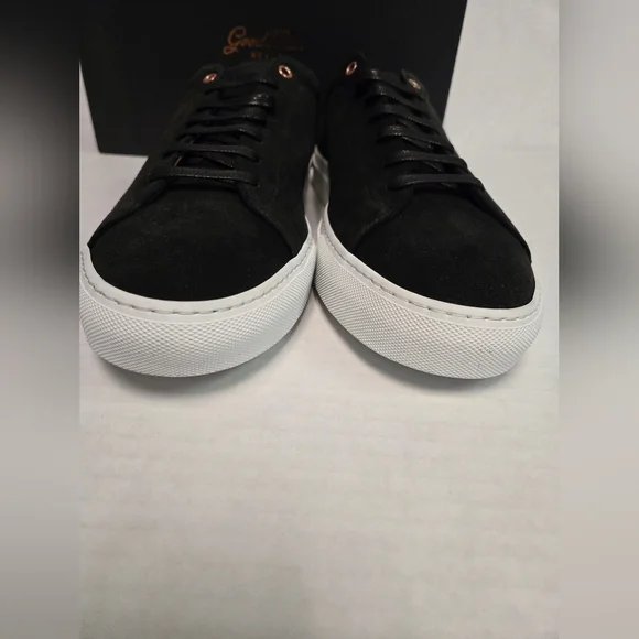 Elevate your style with the Good Man Brand Edge Lo Top Sneaker in sleek black suede. Crafted in Italy, these sneakers are designed for men who appreciate quality and sophistication. The lace-up closure ensures a secure and comfortable fit, making them ideal for any occasion, from casual outings to active days at school or work.The versatile rubber outsole provides excellent traction, while the standard shoe width and low-top shaft style offer a comfortable experience throughout the day. With a range of themes from classic to edgy, these sneakers are perfect for expressing your unique style. The Good Man Brand Edge sneaker is a must-have for those who value fashion and function equally.BRAND NEW IN BOX SIZE 16. BEAUTIFUL SUEDE SNEAKER. (box may have damage,but doesn't affect shoes) Retail 228.00