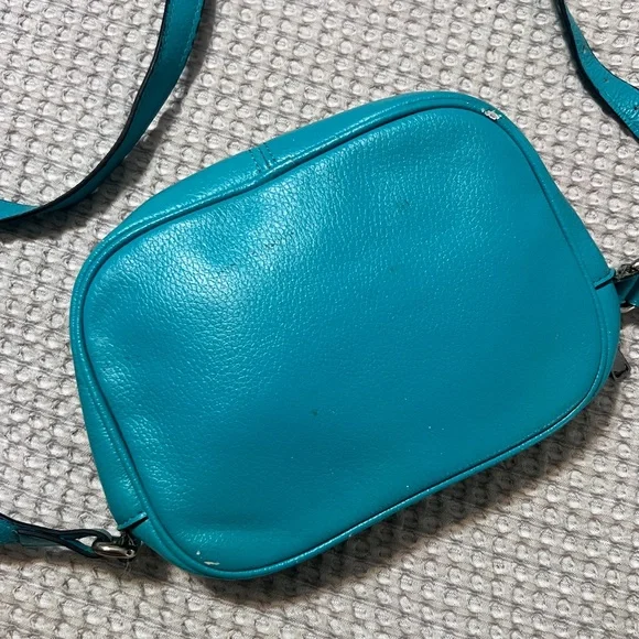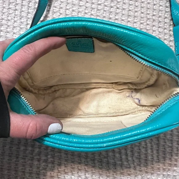Used Authentic Missing tassel Smooth zipper Classic boho turquoise like color, gold hardwareGucci Crossbody BagBlue LeatherInterlocking G LogoGold-Tone HardwareSingle Adjustable Shoulder StrapTassel AccentsCanvas Lining & Dual Interior PocketsZip Closure at TopSizeBase length: 8.00 inWidth: 2.75 inHeight: 5.25 inDrop: 21.00 in