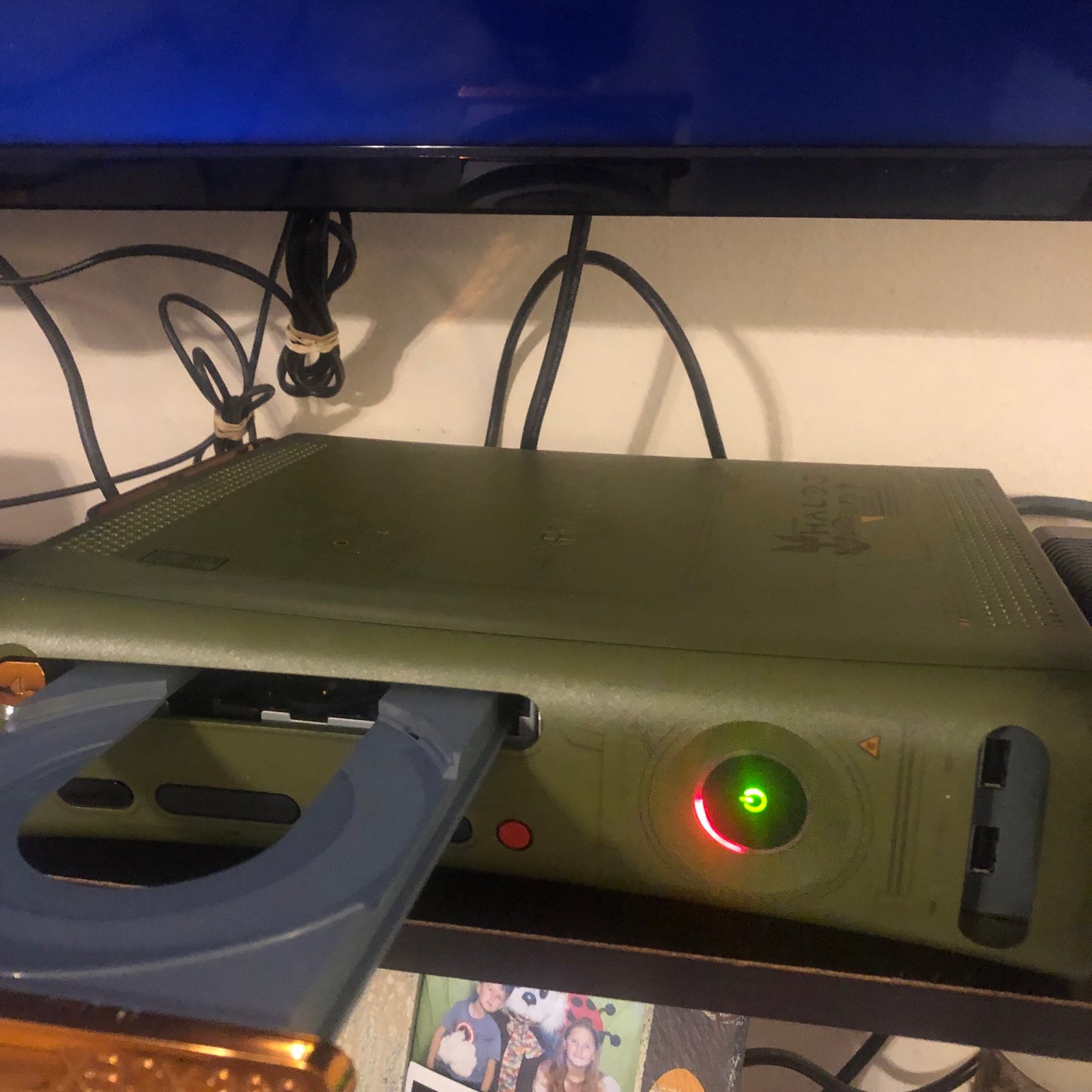 The console is used and shows some scratches to the shell (see all pics) but overall good condition. The console was working perfect without issues the game loaded and disc tray opened and shut (see last pictures), HOWEVER I sold it online and the buyer returned it because they said they got the Red Ring (RROD) (see pics) When I receive it back it no longer worked and the disc tray seems to now get stuck too. It will open if you tap on the top. The USB door is also now unattached but is included with its parts. I was very disappointed because I've had this console for a while and never had any issues and then I sold it and it was returned with the RROD.