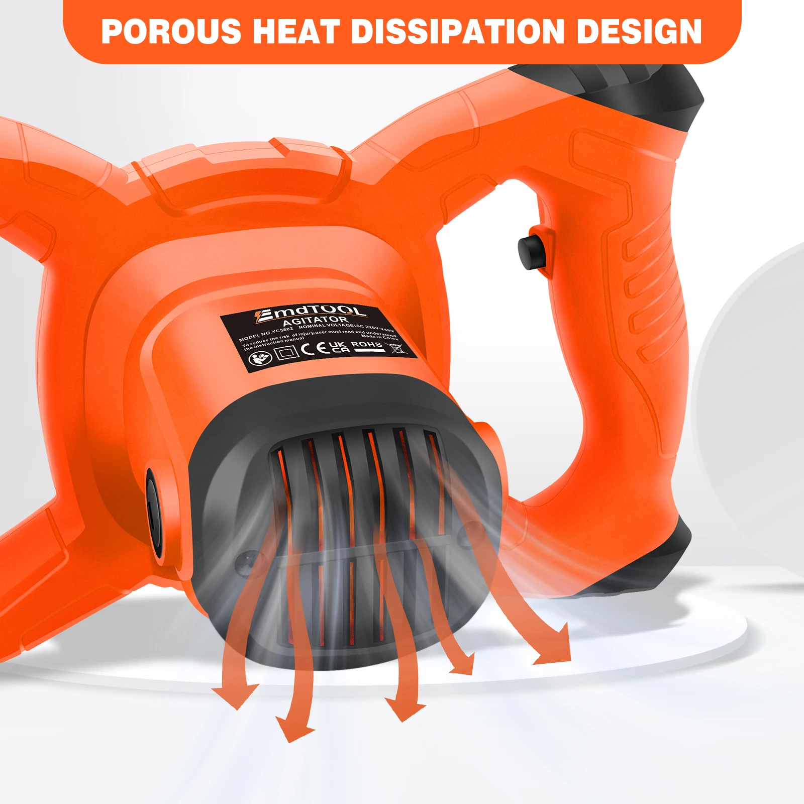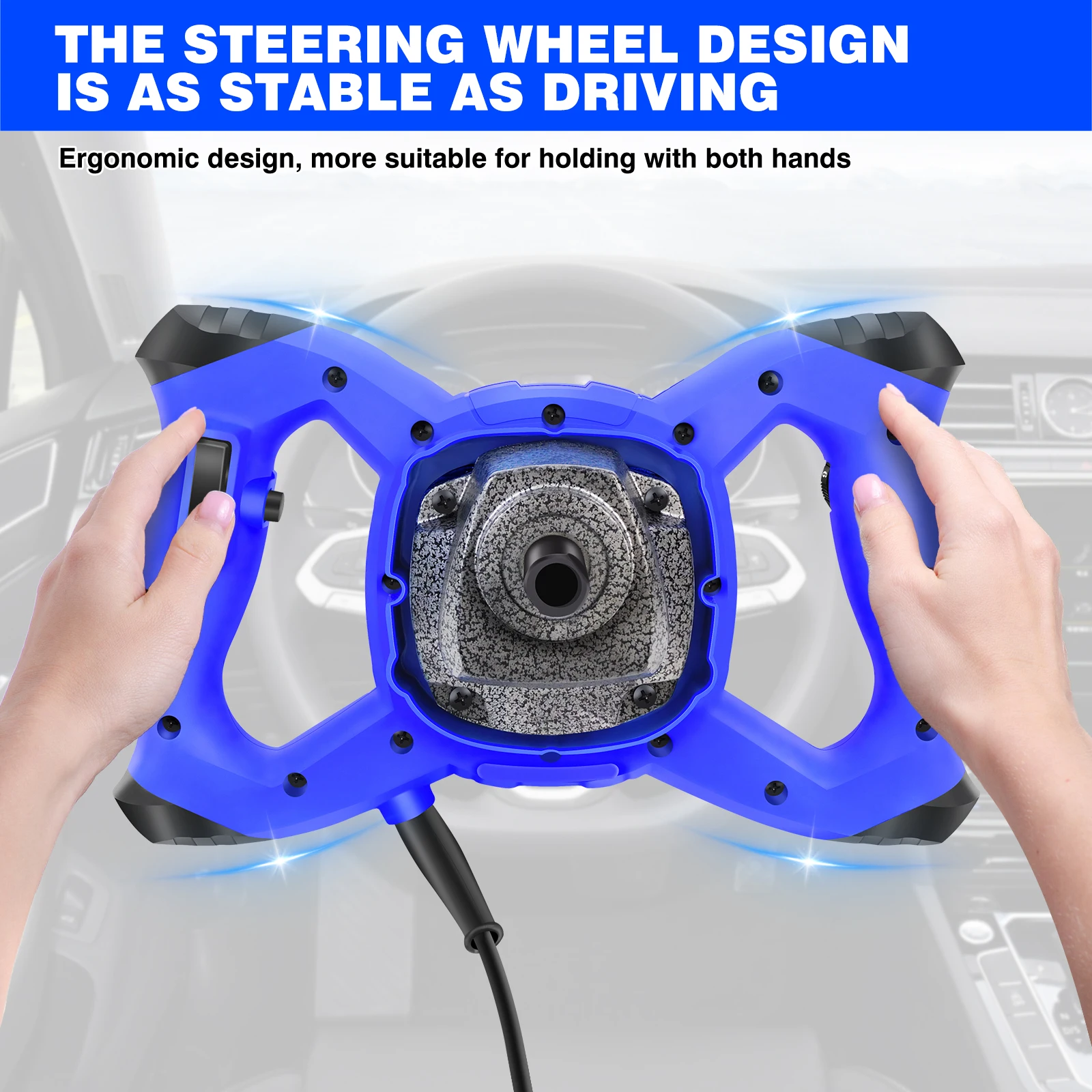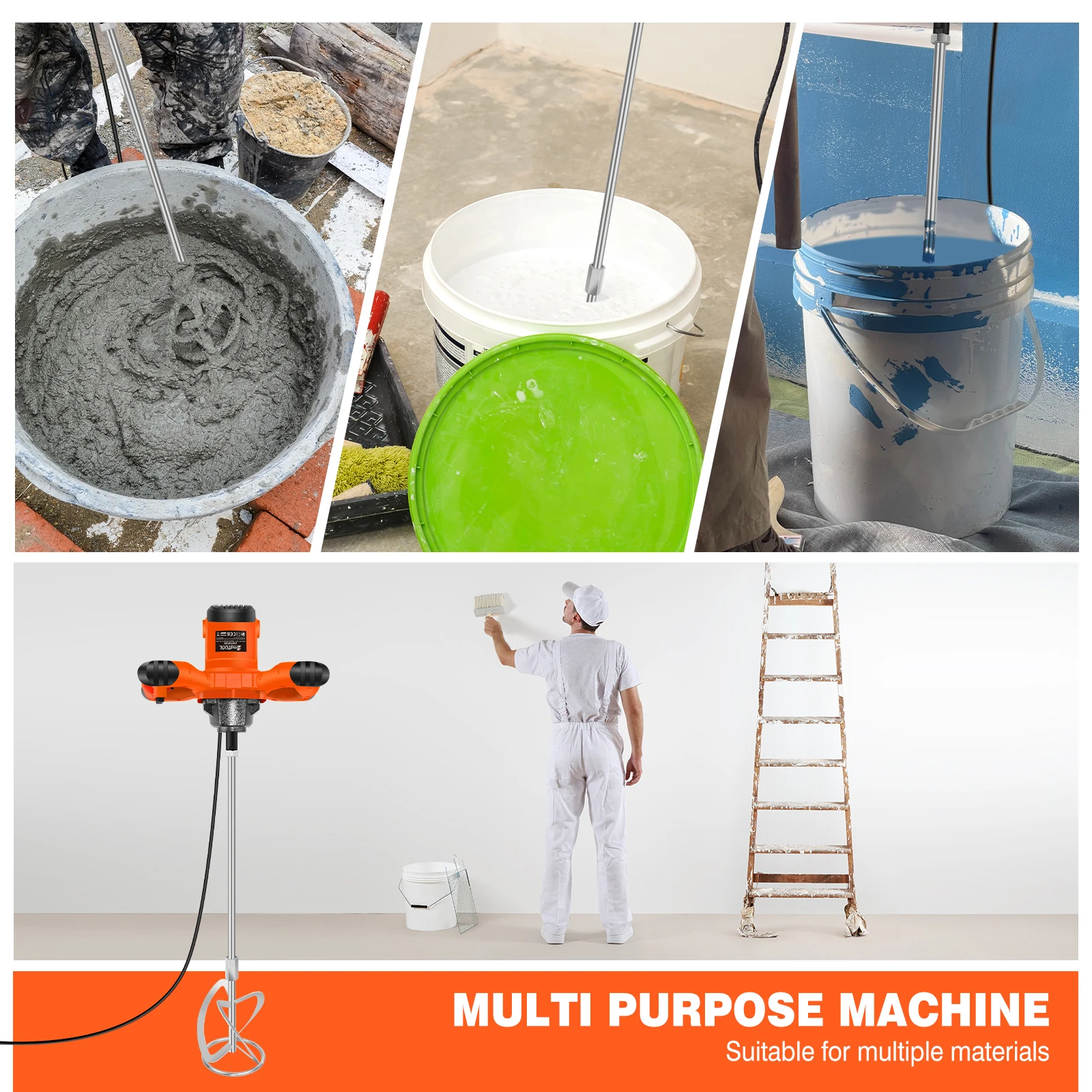 Powerful Motor: Paint mixer has a 2600W pure copper high-power motor with a speed of 0-1700r/min, which is widely used in mixing food, paint, cement and gypsum.