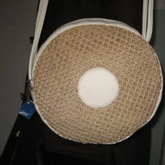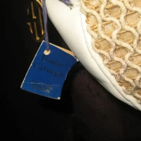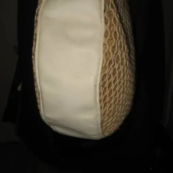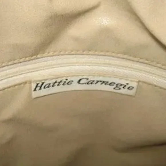 ❤️HATTIE CARNEGIE COUTURE DESIGN Canteen Shoulder Bag Purse with TagBeautiful Hattie Carnegie bag. Lots of detail. Large HC Logo zipper pull on top. Looks like straw but feels more like thick rope/thread front and back with white leather trim. Double strap with a knot design at the top.9" Wide x 8 3/4" tall x 2 1/2". 19" strap drop.CONDITION: This bag was stored by a collector for a long time and has some indentations to the leather, some faint stains on the white leather and a faint pink stain on the zipper area. Please check pictures to be sure you understand the condition. NOT RETAIL BRAND NEW WITH MINOR STORAGE ISSUES.To make sure it is what you want, I gladly and quickly answer all your questions.