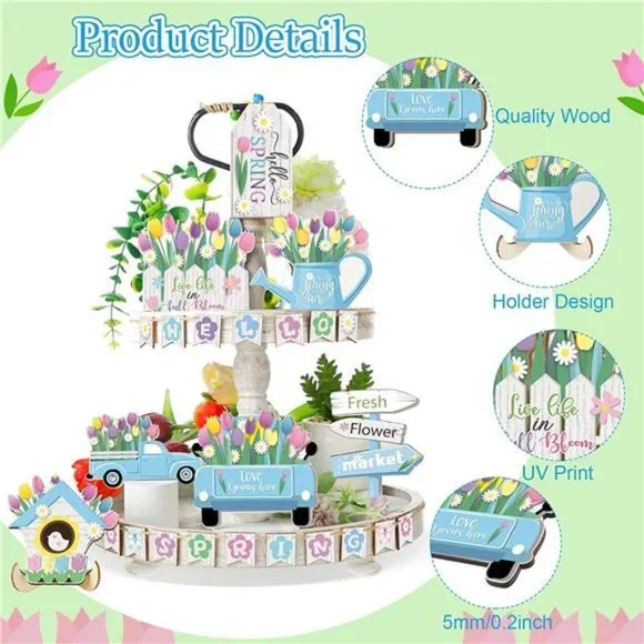 🧿Ideal Tiered Tray Decors Set: the package comes with 24 pieces spring tiered tray decor sets, each of them are adorable and elegant, which are suitable for decorating your tiered trays in your daily life🧿Sturdy and Long Lasting: these wooden tiered tray decors are made of quality wood material, featuring nice stability and durability, and smooth in surface without burr, comfortable to touch and reliable to use, no deformation and in good shape, which can keep in a good condition for a longer period of time🧿Full of Spring Charm: the farmhouse tiered tray decors are full of spring flavor, and designed with delicate patterns, such as flower, truck and so on, as well as bright and beautiful colors, which can fit the theme of festival atmosphere, and bring you a pleasant visual enjoyment🧿Versatile Decorative Applications: in addition to be applied for your tiered trays, our farmhouse tiered tray decors can also be displayed on the dining table, fireplace, cabinet, shelf, or you can use hooks and ropes to hang them on the wall, window, door, tree and other places🧿Housewarming Gifts: these rustic farm decorations can be served as exquisite and charming gifts to present to your families, friends, relatives, neighbors, colleagues and classmates on birthday, housewarming and other proper occasions, which will bring them a sense of warmth and comfort