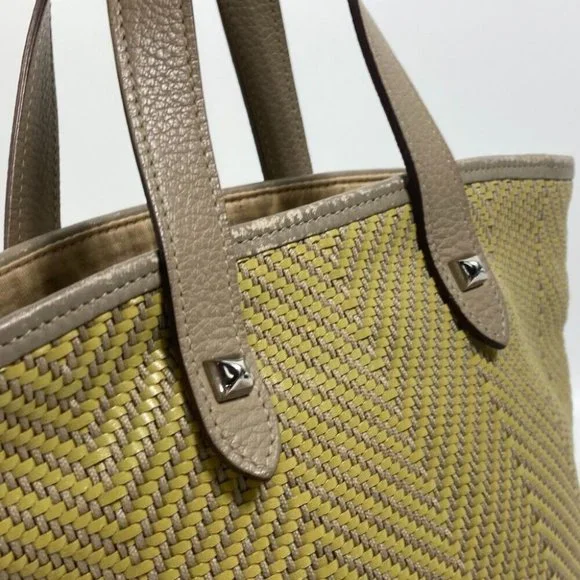 Outside:Scratches,Stain,scrapesInside:Scratches,Stain,Stains dirtMetal fittings part:Scratches,Stain,dullnessOdor:old smellNAME:HERMES Hand Bag Kaba Chennai PM bag studs Tote BagSHAPE:Tote BagCOLOR:※We ask for your understanding in regards to the color and material of each item an estimation by our staff.Yellow BasedMATERIAL:Leather / polyesterAPPROX SIZE:W7.3×H9.4×D5.3inch / W18.5cm×H24cm×D13.5cmThe base is used to measure the width.Listed hand measurements may have a 1-2cm difference.GENDER:Women'sSPEC:[Inside] Open pocket x 1ADDITIONAL ITEMS:NoneITEM RANK:Used AB Rank