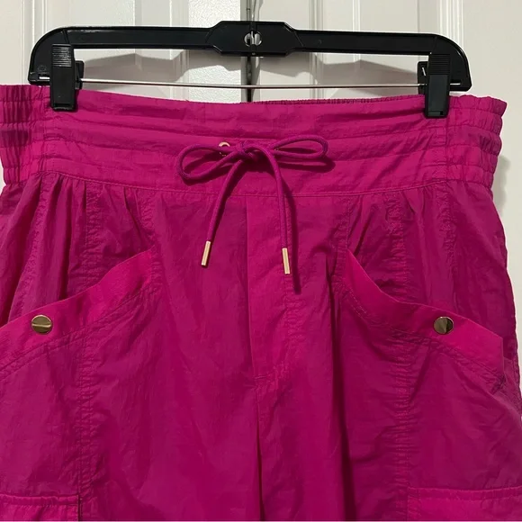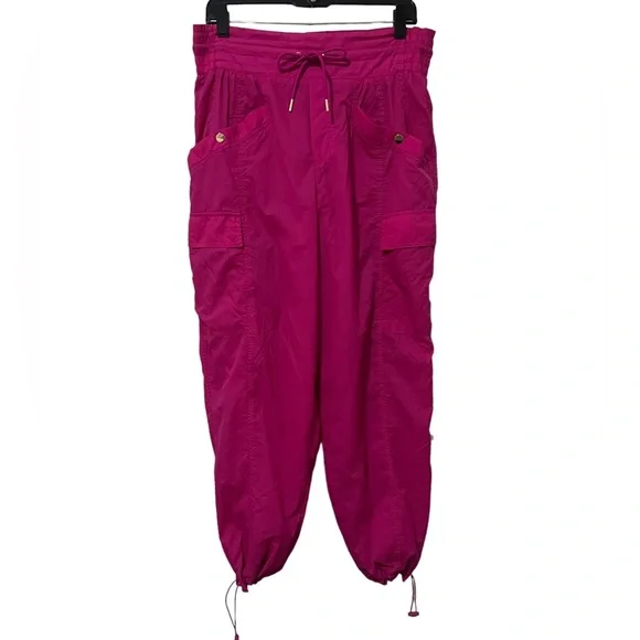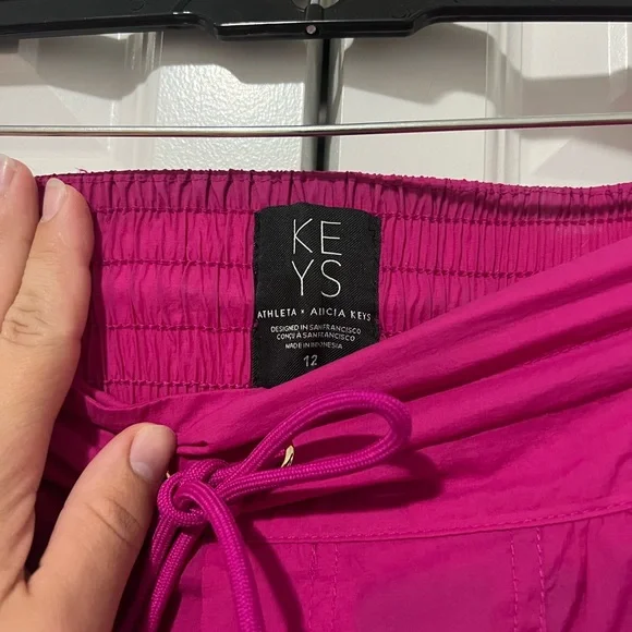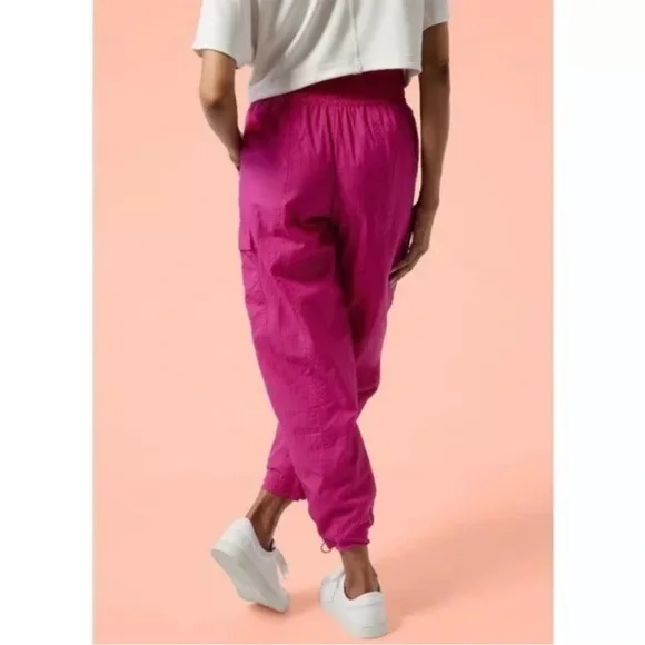Keys high waist utility pants from the Athleta x Alicia Keys limited release collab. Semi fitted high rise. Raspberry fuchsia color. • Lightweight• Elasticized waist at back and drawstring• Multiple pockets• Adjustable drawcord at hemsIn excellent condition like new. From a smoke free home. Size 12. Machine wash and dry. #athleisure #casual #summer #vacation #cargo #utility