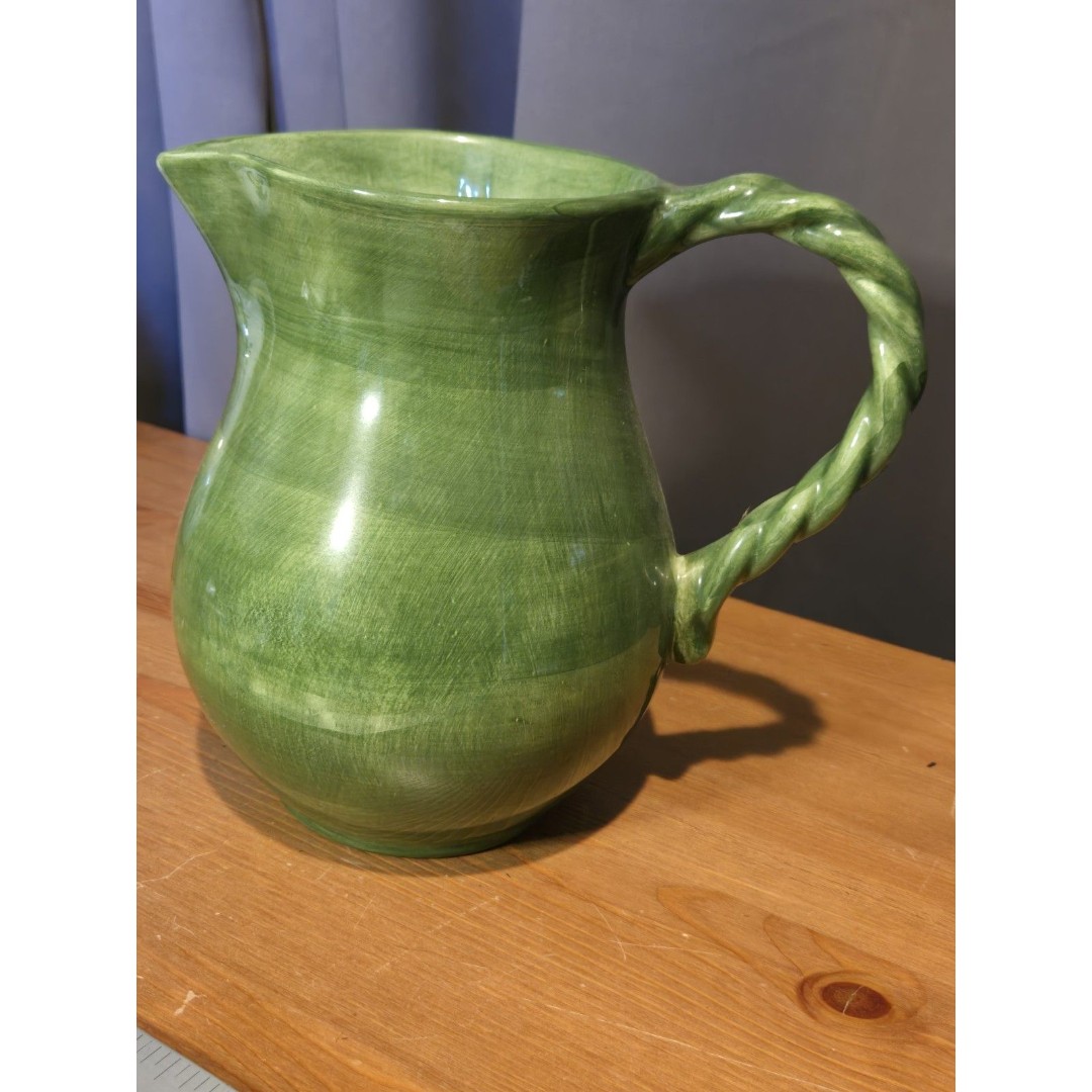 Italian Pottery Hand-painted Green Pitcher With Twisted Handle