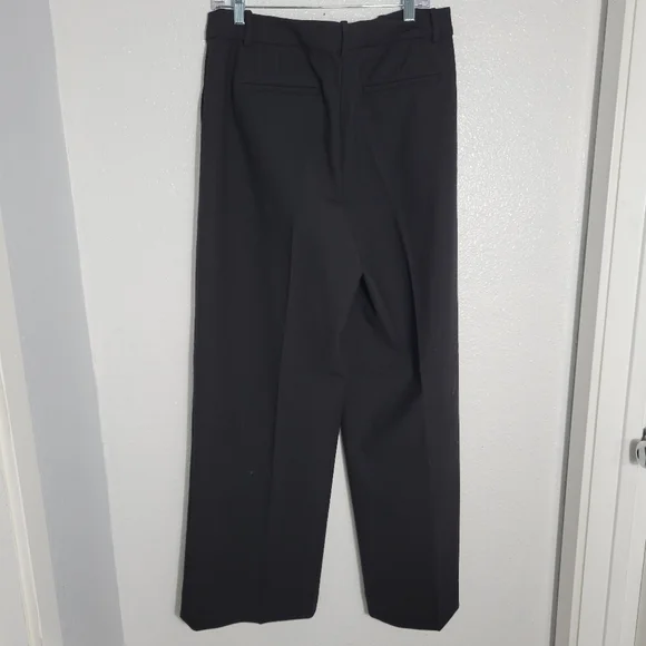 Wide-leg trouser in four-season stretch **Stock photos are for style reference only.Pants for sale are blackA wear-to-work take on everyone's favorite denim fit.-You loved the denim version so much, we had to make it into a proper trouser too. The wide-leg and front pleats add instant polish and the four-season stretch fabric guarantees all-day comfort.67% recycled polyester/28% viscose/5% elastane.Zip fly.Pockets.Please note: Pockets are basted and will need to be opened for use.Machine wash.Imported.Item CC46314
