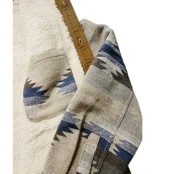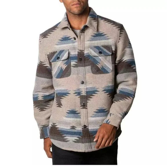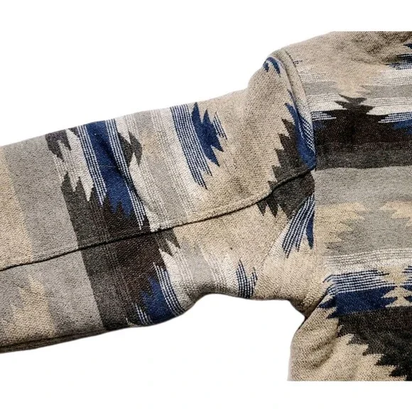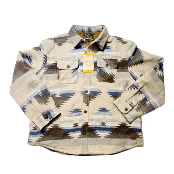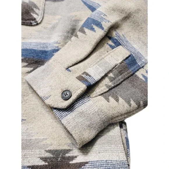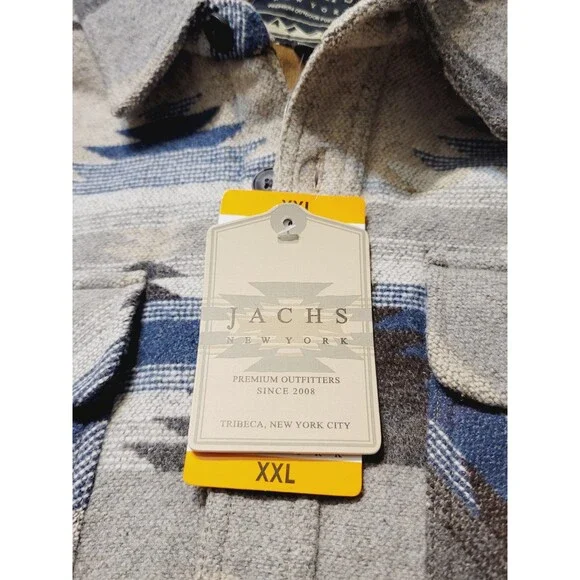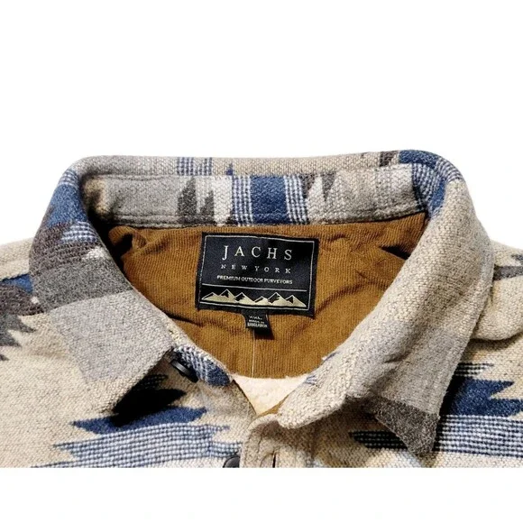 New with tagsJACHS New YorkButton placket with pinpoint collarColor: Tan (Tan/ blue/ brown/ cream tones)Pattern: AztecMade in BangladeshBody Lining: 65% Polyester | 35% CottonSleeve Lining 100% PolyesterSize: XXLBack Body length (in): XXL = 32 ½Approx overall front length laying flat: 30"Approx pit to pit laying flat: 27"Do not machine washCan be dry cleanedButton placket with pinpoint collarFleece lined pocketsChest pocketsFully lined bodyHeavyweightMade in Bangladesh