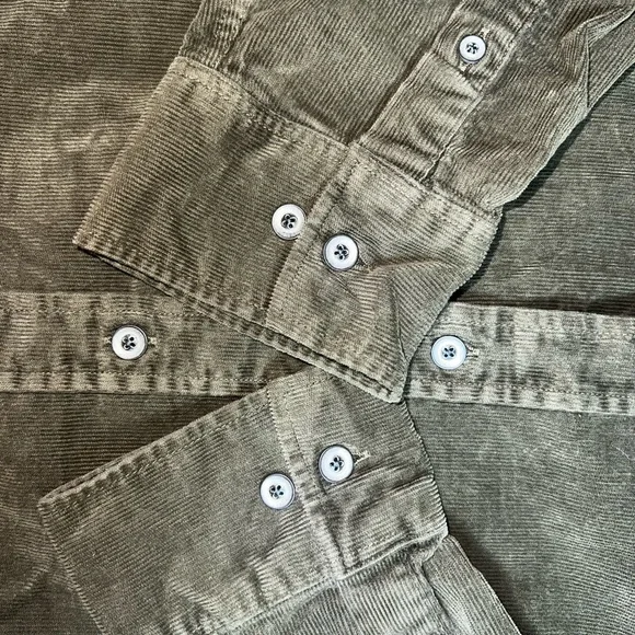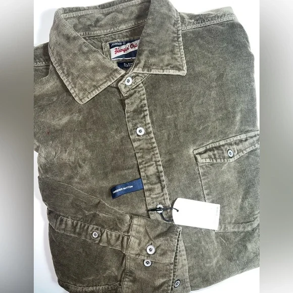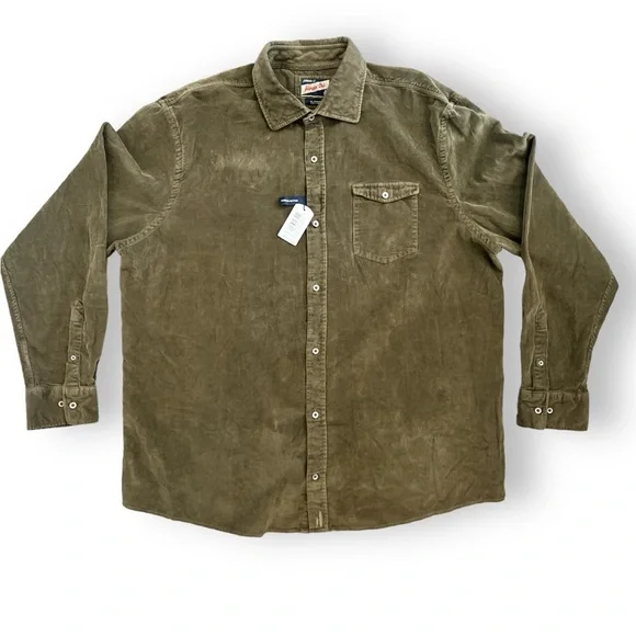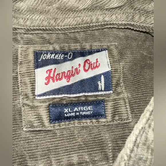 johnnie-O Kodiak Hangin Out Corduroy Button Up Shirt Olive Green Sz XL NWT $158Nothing says West Coast cool quite like this retro corduroy button up. Everything you love about our classic Hangin' Out button up shirts, in a fun new fabric for fall. This button up is easy to pair with your favorite johnnie-O denim and outerwear for a look that is sure to garner the question, "Where'd you get that shirt?"Long sleeve corduroy woven shirtButton thru flap chest pocketSoft spread collarTweener buttonApplied placketEmbroidered logo at bottom tailImportedMeasurements are approximatePit to pit 25”Center back 29”