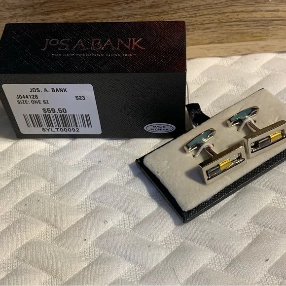 Product detailsThese polished cuff links from JoS. A. Bank encases grooved, moving cylinders in contrasting hues for an intriguing, modern look.COO IMPORTEDSMOOTH SILVER FINISHINGSMALL MOVING CYLINDER DETAIL CENTERThis style is going to be the star of a sophisticated and dapper outfit.NOTE: The product description for the listed items comes from one or more of the following sources: Manufacturer, Wholesaler, Retailer, Packaging, or the creator/designer's own description, or from a comparable brand with similar design and intended use.Please read the product description thoroughly before making a purchase decision.About me: I am open to fair offers. Items are shipped on the same or the next day. New products are added daily. Thank you for visiting my store. Make the most of your day.