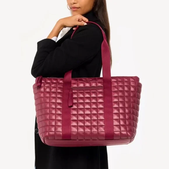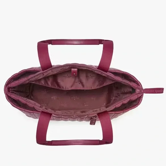 Authentic Kate Spade New York NWT Brand NEW with Tag Collection: CamdenLightweight and Water Repellent FabricQuilted Nylon PolyesterKSNY Pinmount logoExterior zip pocket front, Slip Pocket on both sidesTop zip closureInterior 1 large (tablet sized) slip pocket with snap tab closureSignature Two way script logo liningTonal HardwareShoulder Length Handle drop 11"XL Size: 12.4” H x 15.6-20” W x 8” DColor: Blackberry PreservesMSRP $429 plus tax• Trendy School Bag • Sports Gym Bag • Overnight Duffle Travel Bag •