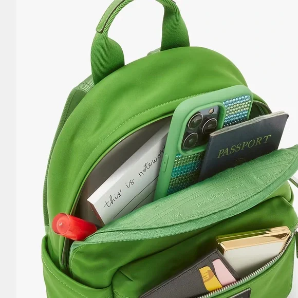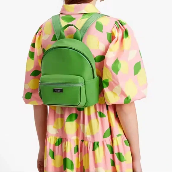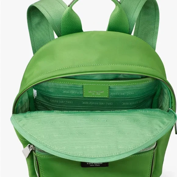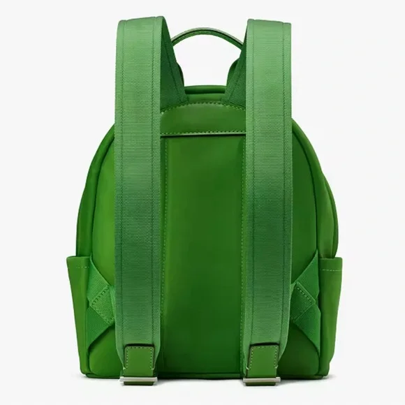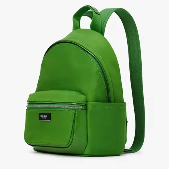 Get ready for your trip carrying your essentials in the Kate Spade New York® Sam Icon Nylon Small Backpack.Nylon construction.Zipper closure.Pocket:One external front zipper compartment;One internal back wall slip pocket.Top carry loop;Adjustable shoulder carry straps.Includes a dust bag.Brand logo at the front.Polyester lining.Bottom Width: 8 inMiddle Width: 8 1⁄2 inTop Width: 6 inDepth: 3 1⁄2 inHeight: 10 1⁄4 inStrap Length: 34 inStrap Drop: 15 1⁄2 inHandle Length: 7 inHandle Drop: 3 1⁄2 inWeight: 15 oz