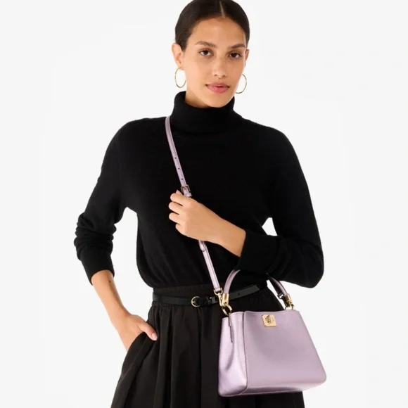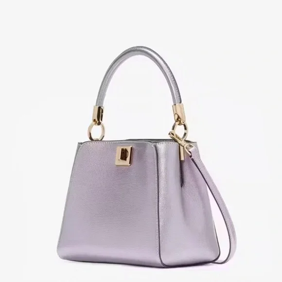 Authentic Kate Spade New YorkNWT Brand NEW with TagCollection: PhoebeMetallic Light Purple Refined Grain LeatherKSNY Engraved on Hardware logoTurn lock closure Front CompartmentMagnetic Snap Closure Back Compartment Interior with slip pocketUnlinedHandheld Top Handle Drop: 4.5"Detachable and Adjustable Leather Crossbody Shoulder Strap Drop: 22"Small Size: 4.53" D x 6.65" L x 7.99" HColor: Light Candied Flower (500) XDJMSRP $349 plus tax