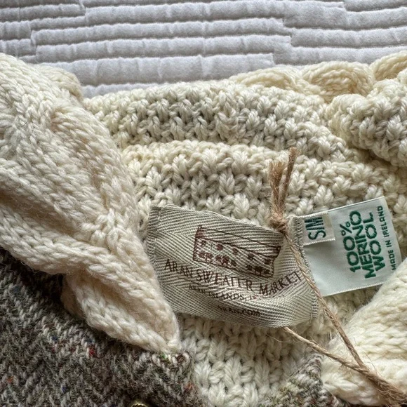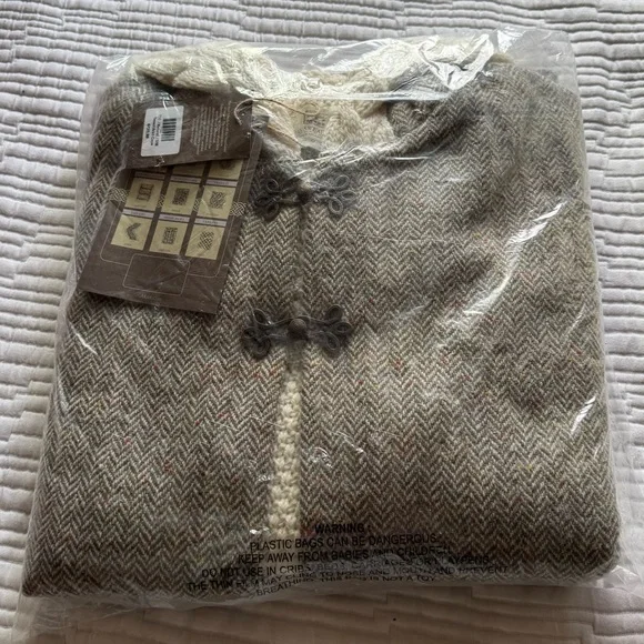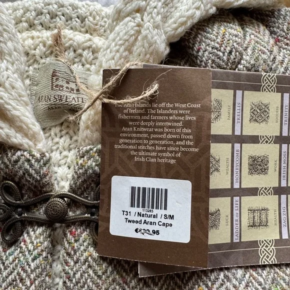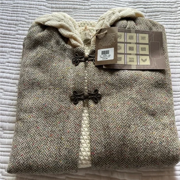 Brand: Aran Sweater Market Size: S/MColor Natural Retails for $300Beautiful hooded tweed Cape made with Donegal tweed and Merino wool. This is a must have piece for you to have in your collection.The outer side of the cape and hood is made from Donegal tweed and the inside is lined with Merino wool. A very warm and comfortable cape to wear over any outfit.