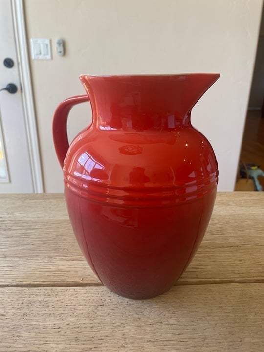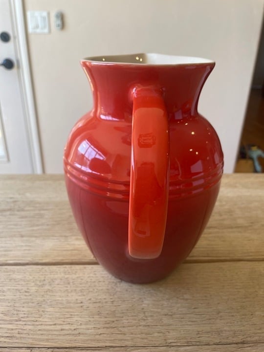 This Pitcher is an elegant option for serving hot or cold drinks, or as a vase for freshly cut flowers. Crafted from premium stoneware, hot liquids stay hot and cold liquids stay cold. The pitcher is finished with a vibrant glaze which is easy to clean, dishwasher-safe, and resistant to chips, scratches and stains. Designed to stay beautiful with daily use, Le Creuset’s tableware brings elegant style to every table and occasion.