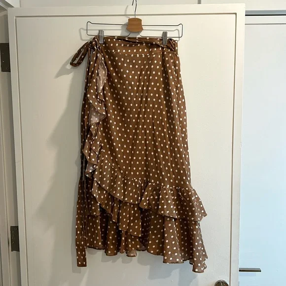 Lee Mathews Brown Wrap Skirt, Size 2Polka Dot Cotton Excellent Condition