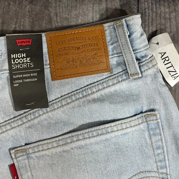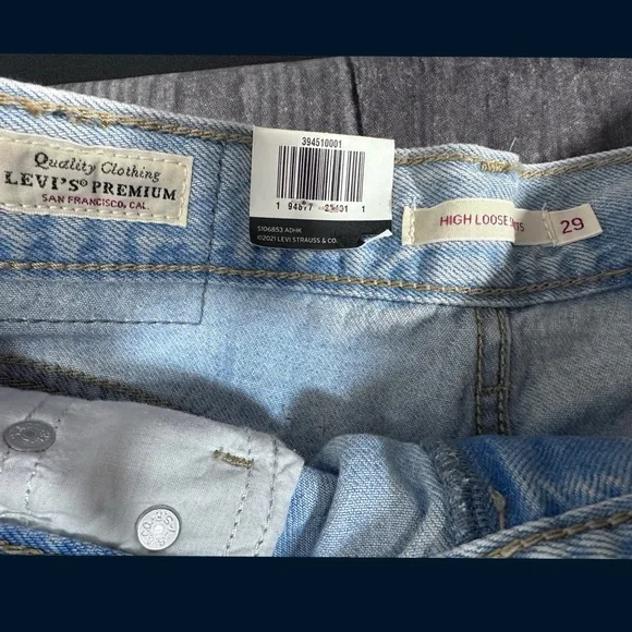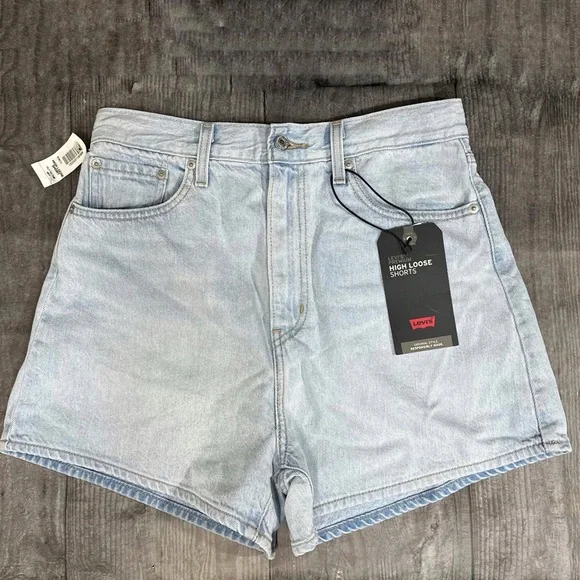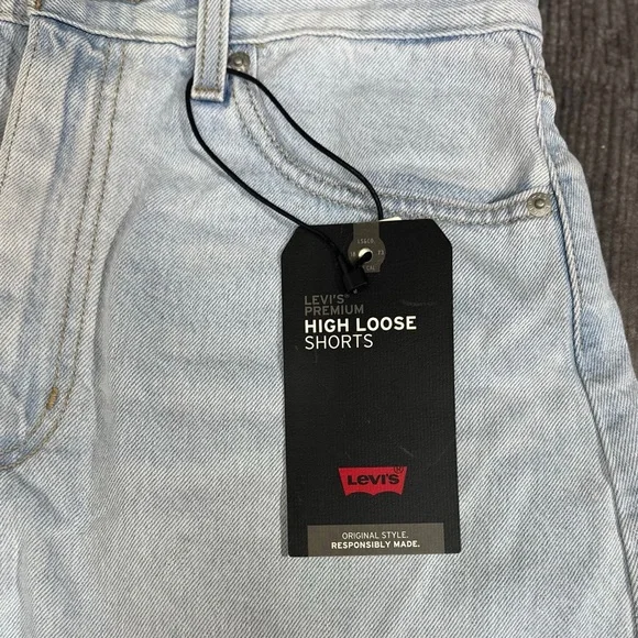 Levi’s High Loose Shorts in Fly to the Sky NWT [13160]. Size 29. Let loose with this modern interpretation of a classic '90s style. These shorts have a relaxed fit and flattering high rise.*Vintage-inspired style*Waist-emphasizing high rise*A-line shape*Sustainably made with TENCEL™ fabricFit:*Loose through your hip*Super high riseComposition & Care:*79% cotton, 21% lyocell*Denim*No stretch*Zip fly*5-pocket styling Approx 3” inseam. Brand new, never worn, tags attached.Item #13160