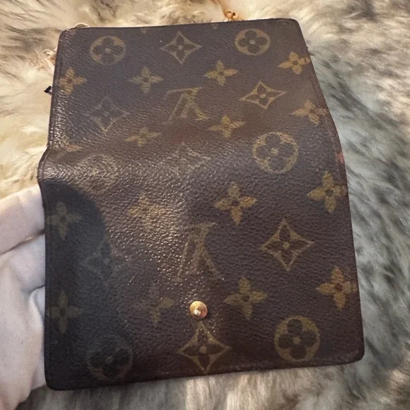 Elevate your style with this luxury designer crossbody bag. Featuring a rich brown color and elegant gold chain, this bag is perfect for any occasion. The designer brand adds a touch of sophistication to your ensemble.code mi0978Size(inch) : W5.1 x H3.1 x D0.8inch(Approx)Style : WalletComes with : There is no item box and dust bag. We will send only the item you can see in the photo.comes with a gorgeous unbranded ! 47 inch chain and unbranded charm has been converted to a Crossbody with unbranded inside rivetsThis item has been used and may have some minor flaws. Before purchasing, please refer to the images for the exact condition of the item. condition is good. Please ask questions. It is in great working condition. Snap works great. lock works great. Exterior normal wear no major damages. Interior normal wear no major damages some wearin the side pockets/ edges have been touched up with edgecoat to improve the look please keep in mind for in purchasing. This is a pre-loved item but in great working condition like all things with age, it will have some bumps and bruises. Thank you. Please ask any questions.Vuitton wallets are made of sturdy leather. Fakes may smell like plastic or chemicals. please please read my reviews/all offers are considered/ bundle save 20%/comes from a clean smoke-free home please ask any questions . Take care of God bless.