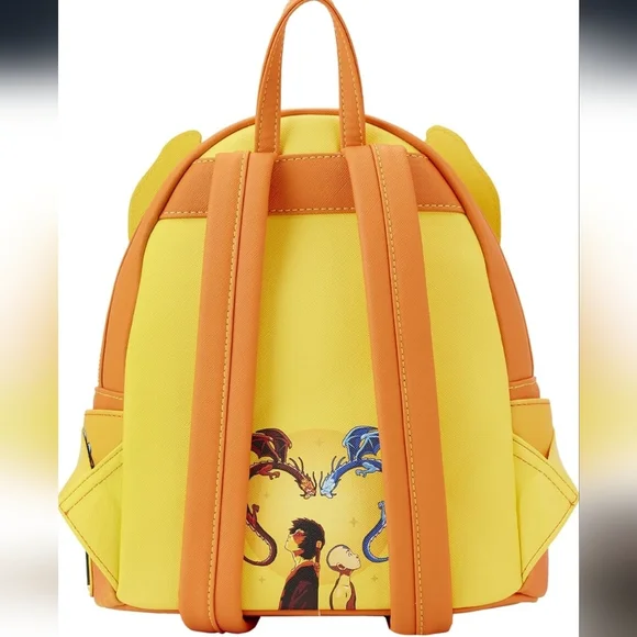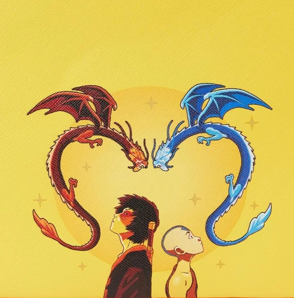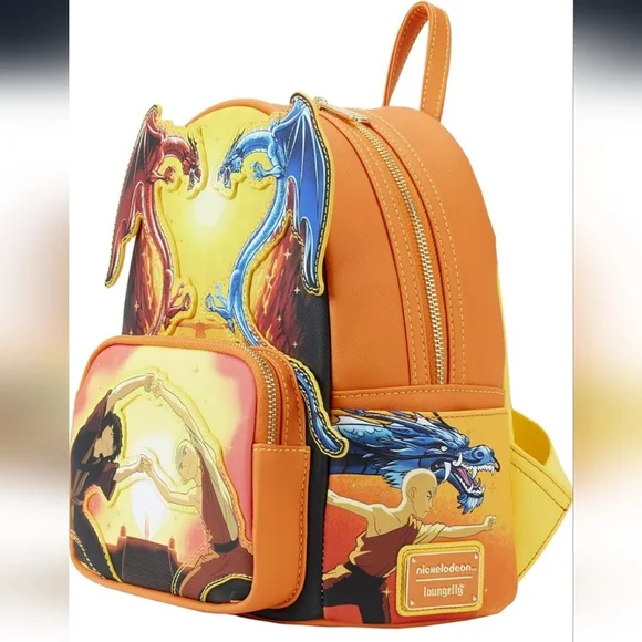 Ready to face the Masters? Put your firebending skills to the test with the Loungefly Avatar: The Last Airbender Fire Dance Mini Backpack. On the front zipper pocket, Zuko and Aang join together in the Dancing Dragon form. Up above, red and blue dragons wait to deliver judgment as gold foil stars appear around them. Aang and Zuko mimic the dragons’ movements on the bag’s side pockets, and the Masters gift their knowledge on the back. This mini backpack is sure to bring balance to any outfit and is perfect for those looking to learn the ancient ways of firebending. The Loungefly Avatar: The Last Airbender Fire Dance Mini Backpack is made of vegan leather (polyurethane). Bag has adjustable shoulder straps and sturdy metal hardware. Additional features include applique, foil, and printed details. - Mini BackpackSize: Standard 4.5 x 9 x 10.5 inchesVegan leather mini backpack, fabric liningAppliqued and printed details2 way top zipper closure, carrying handleSide pockets