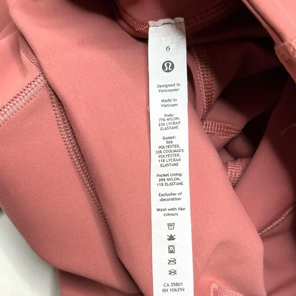 Size 6Excellent conditionBrier roseTrain hard, not hot. Powered by Everlux™ fabric, this pocketed version of our Wunder Train tights lets you get sweaty, stay focused, and keep workout essentials close.our fastest-drying, everlux™ fabricOur fastest-drying fabricBreathableSweat-wickingFour-way stretchSupportiveFeels cool and sleek on the inside, soft and brushed on the outsideAdded Lycra® fibre for stretch and shape retentionfeaturesWaistband drawcord keeps your leggings in place so you don’t have to pull them upHidden pocket in the waistband has space for your card and keysTwo side drop-in pockets fit your phone