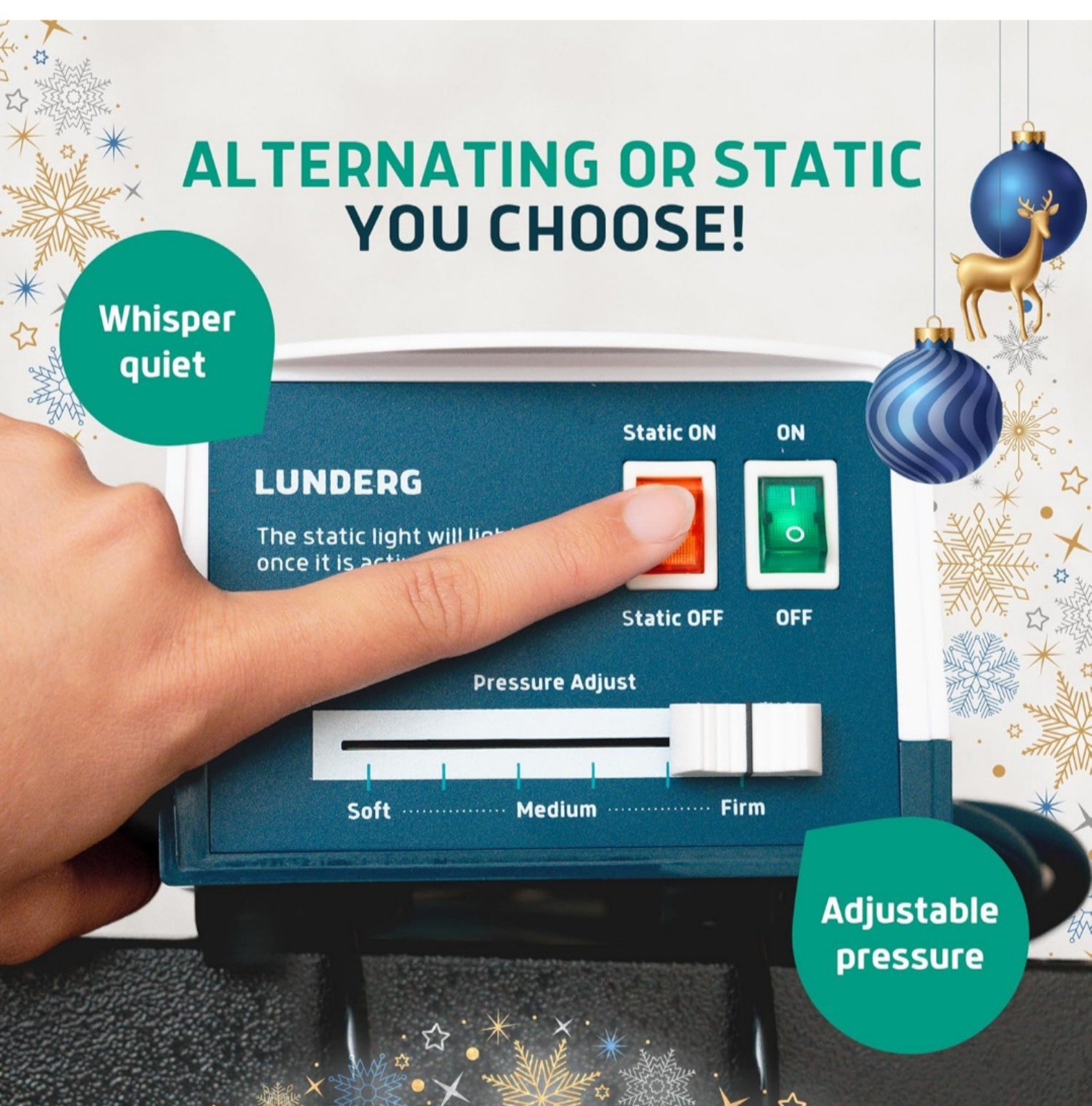 Lunderg Alternating Air Pressure Pad for Recliner Chair - Pressure Relief Cushion Topper for Recliner - Bed Sore Prevention - Includes Medical Grade Mattress Pad, Cover & Quiet Pump.