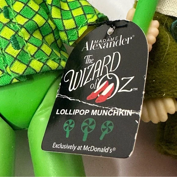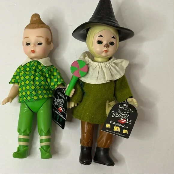 Bring the magic of the Wizard of Oz to life with this charming collectible figurine set. Featuring vibrant colors like silver, blue, brown, green, black, and red, these figures are perfect for imaginative play or display. A must-have for any fan of the classic tale.Madam Alexander McDonald’s Wizard of Oz dollsLollipop Munchkin and Scarecrow both have tagsGreat conditionQuick shipping!Message us with any questions!WN-L14