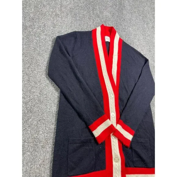 Madeline Thompson Women's Navy Blue Cardigan Sweater Button Closure Size LProduct Detail•Brand: Madeline Thompson•Type: Sweater •Color: Navy Blue•Condition: The sweater is in used condition. There are visible signs of wear and tear, including pilling on the fabric. The overall condition is fair, with no major rips or tears.PLEASE NOTE:Please review the pictures before making a purchase. We value your business and encourage you to send a message if you have any issues or concerns I answer most questions instantly! Thank you!