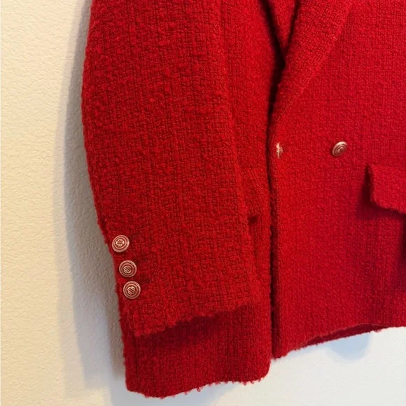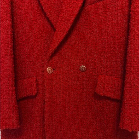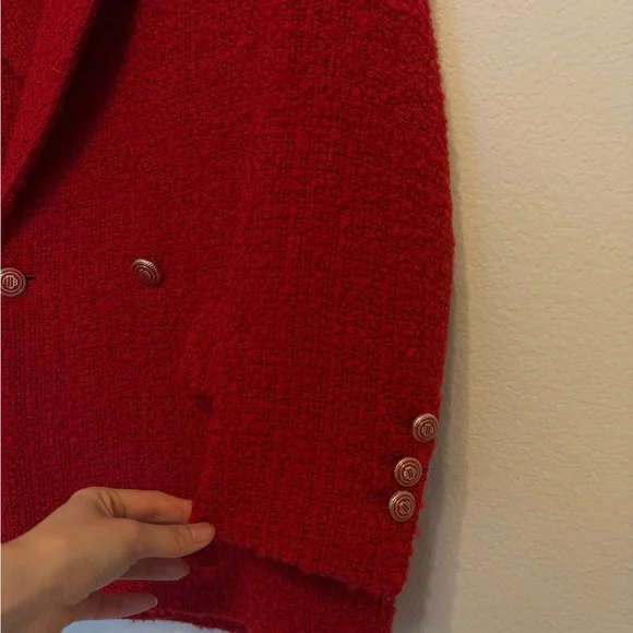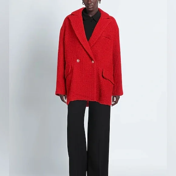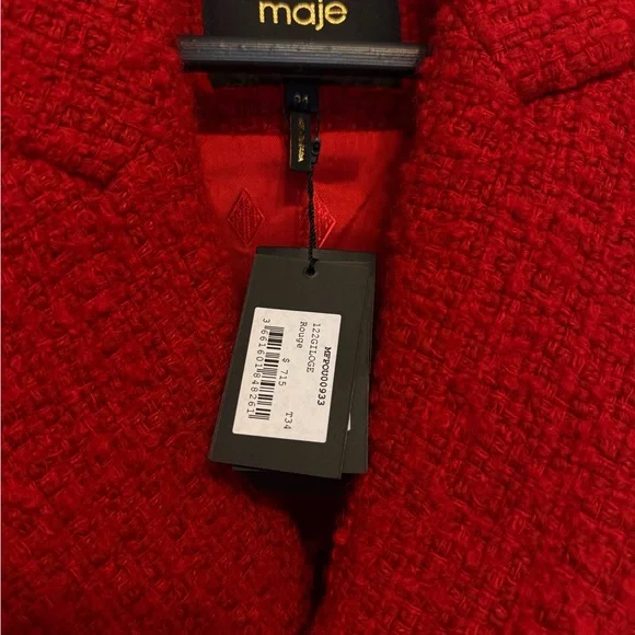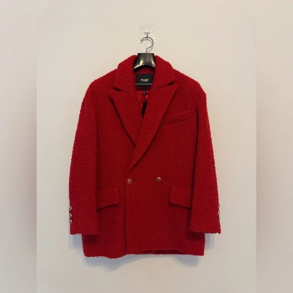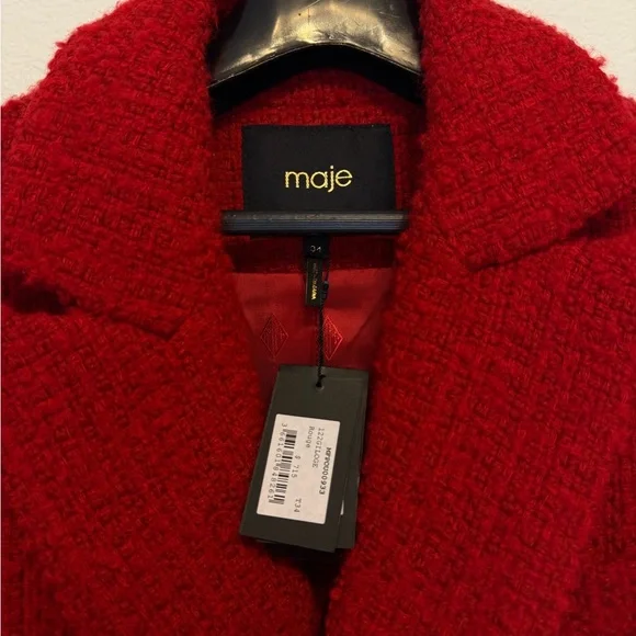 Maje Red Tweed Coat JacketBrand New with Tagstweed, no appliqués, solid color, lapel collar, double-breasted, long sleeves, fully lined, button closing, multipockets, pocket with flap, double-breasted jacketoversized fitOriginal Price: $715Size: 34 (XS-S)#maje #sandro #tweedjacket #redcoat #coat